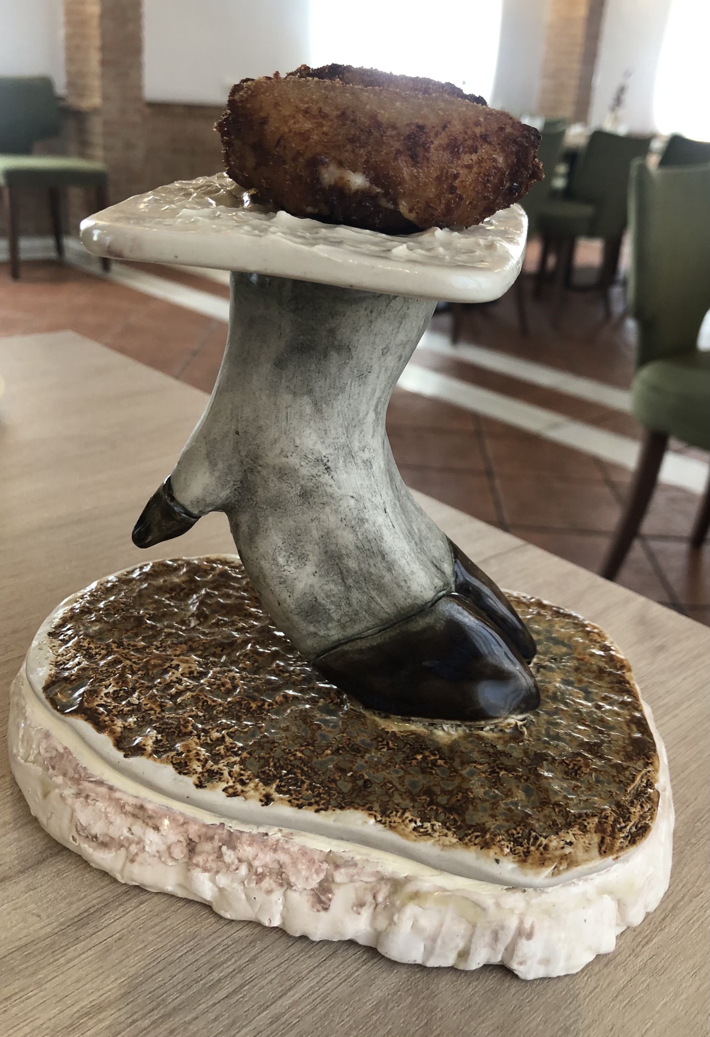 Y la premiada Croqueta artesana de jamón ibérico Finalista Mejor Croqueta de España Madrid Fusión 2024, en una curiosa presentación
