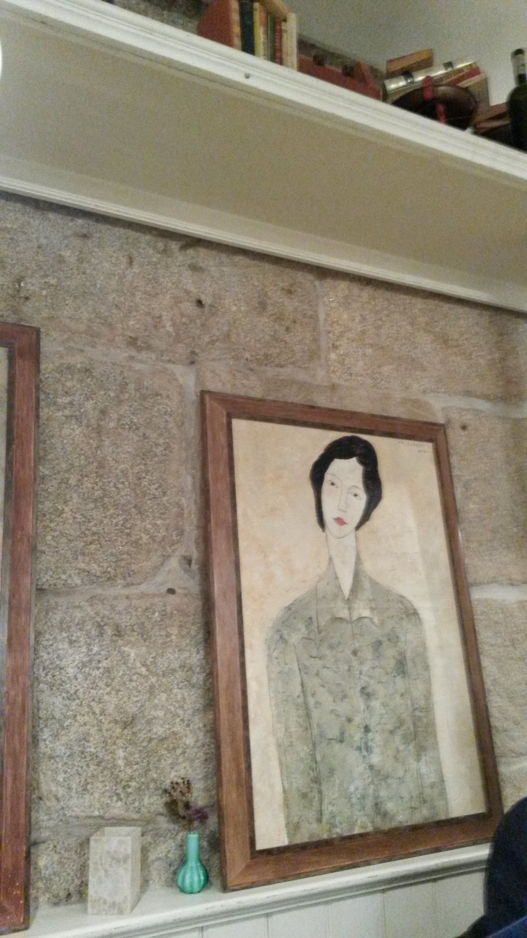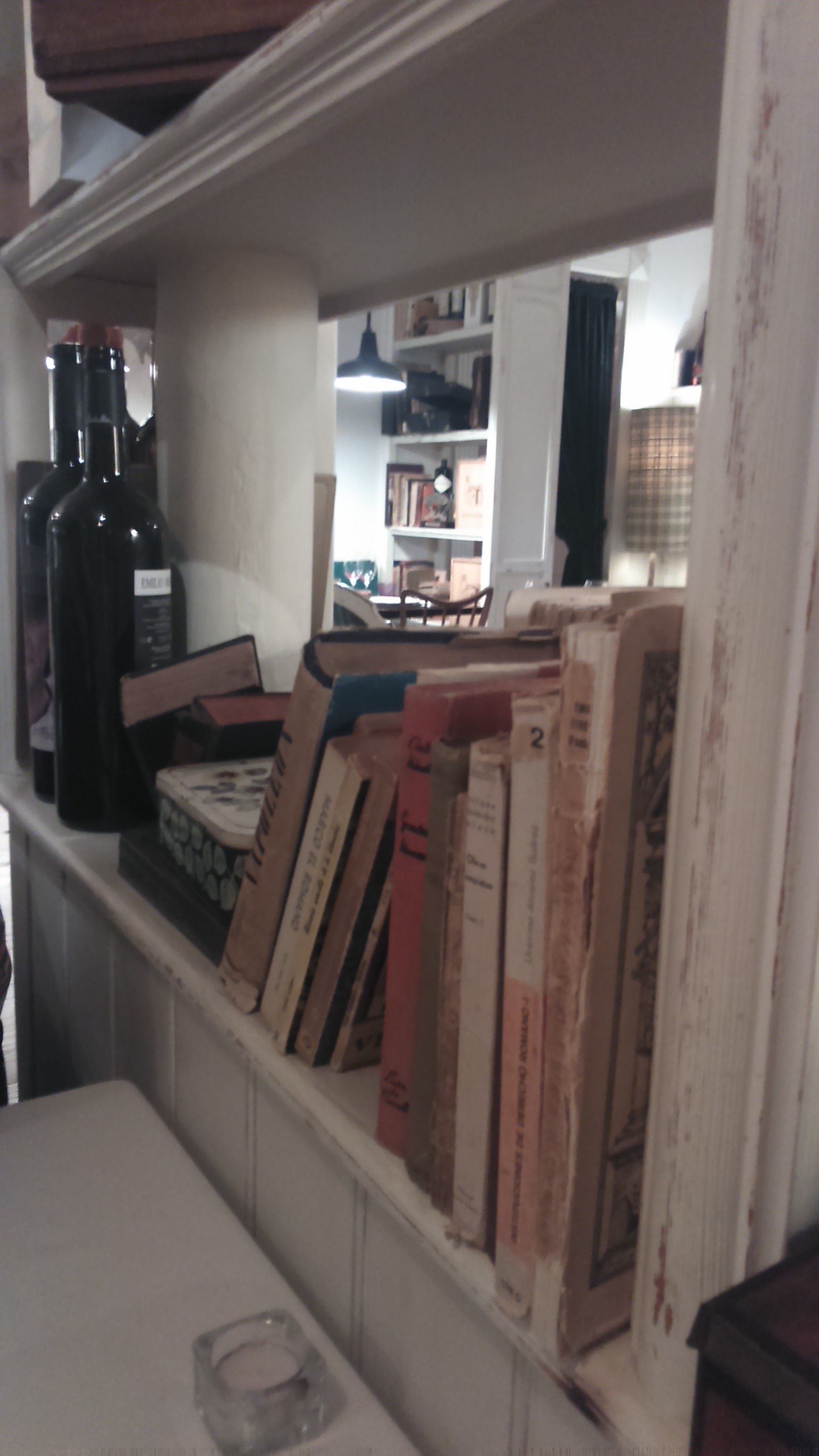 Los detalles se suceden, la alacena a modo de platero, destacando una báscula antigua; los cuadros; el rincón del sofá; las lámparas, todas distintas; la librería, con libros de variada época y temática, antiguos también; y así un sinfín de objetos mezclados con un gusto exquisito.