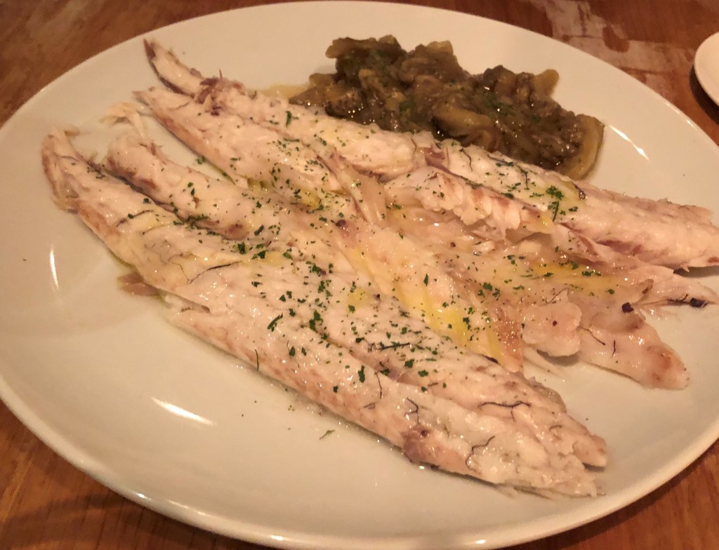 También es buena la opción de sus Canelones rellenos de carrillada de ternera, o el pescado que te ofrezcan ese día como esta apetecible lubina