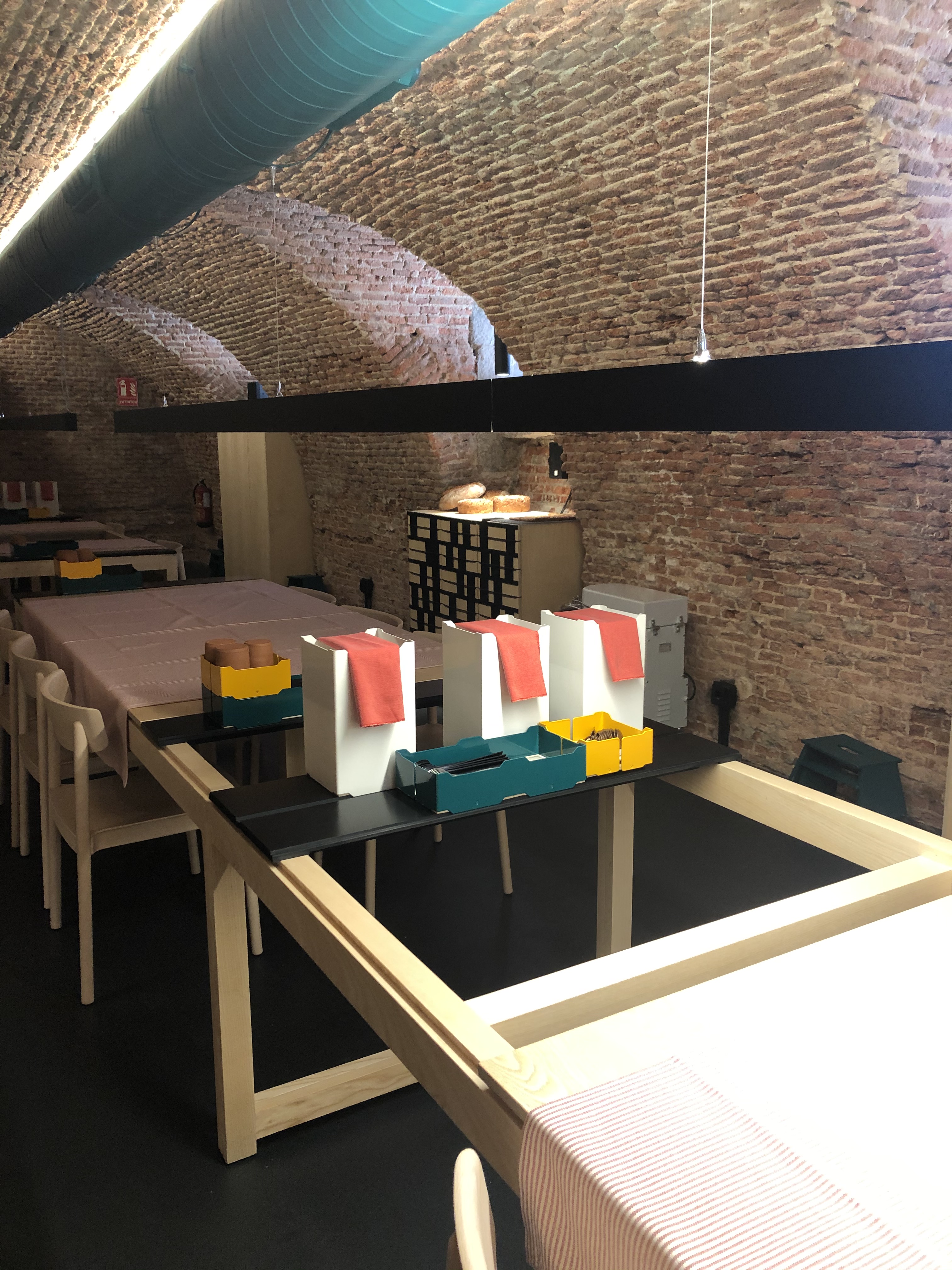 El local, una antigua carbonera, una larga sala con el techo abovedado y ladrillo visto, tiene un cierto aire industrial y muy original.