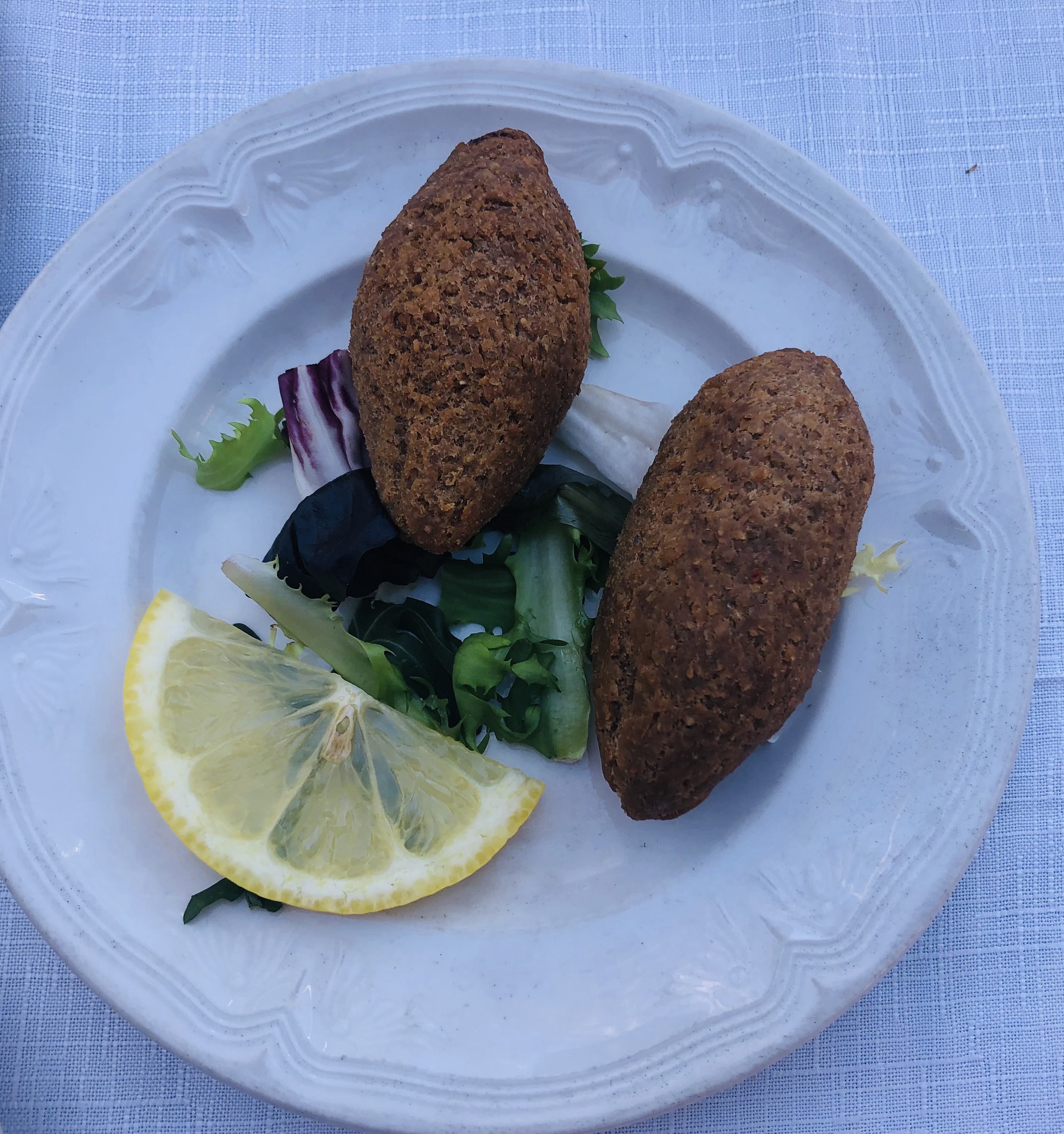Kubbeth frito, unas croquetas de carne y bulgur con cebolla y piñones.