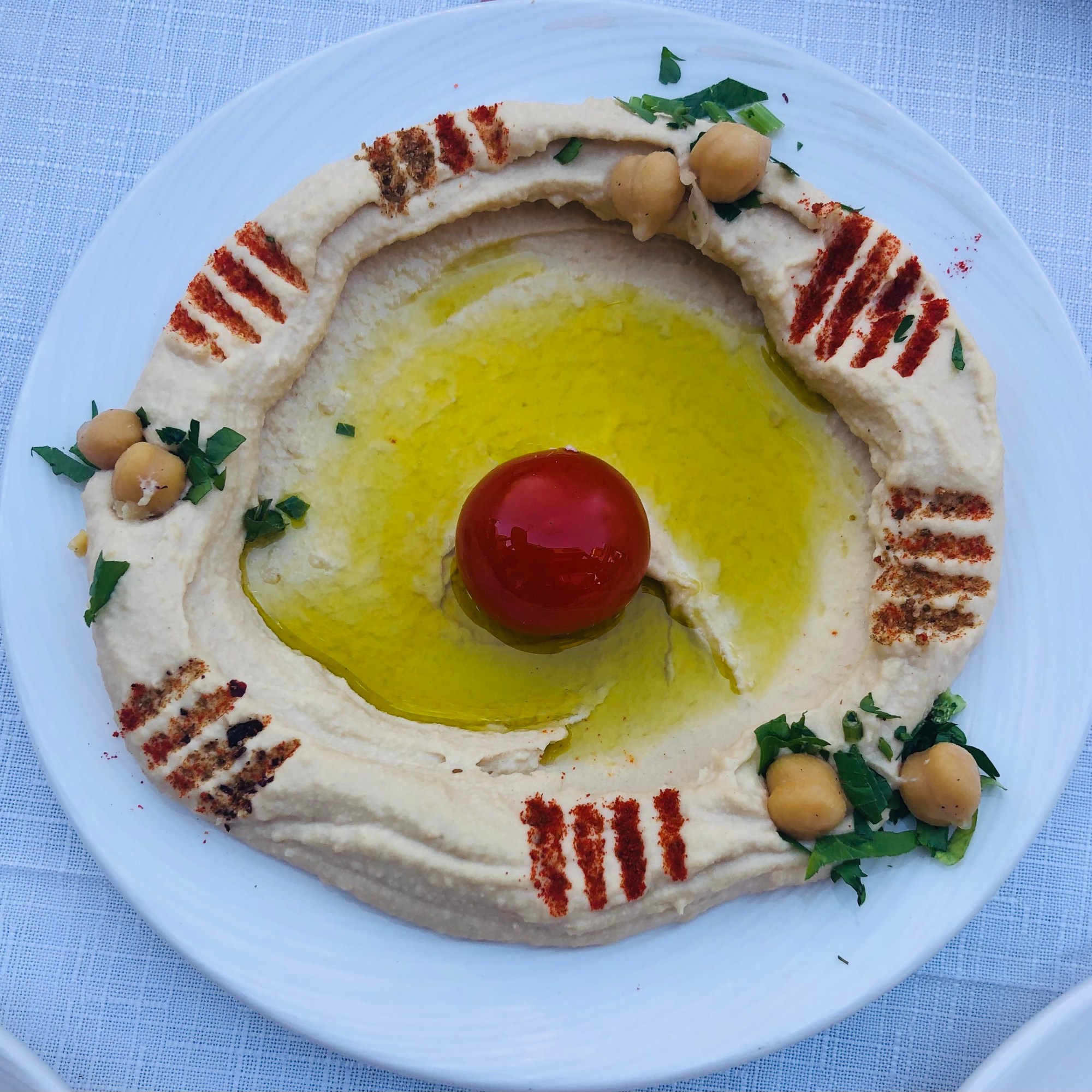 Compuesto por cuatro entrantes fríos, una refrescante ensalada, el típico Hummus de garbanzos.