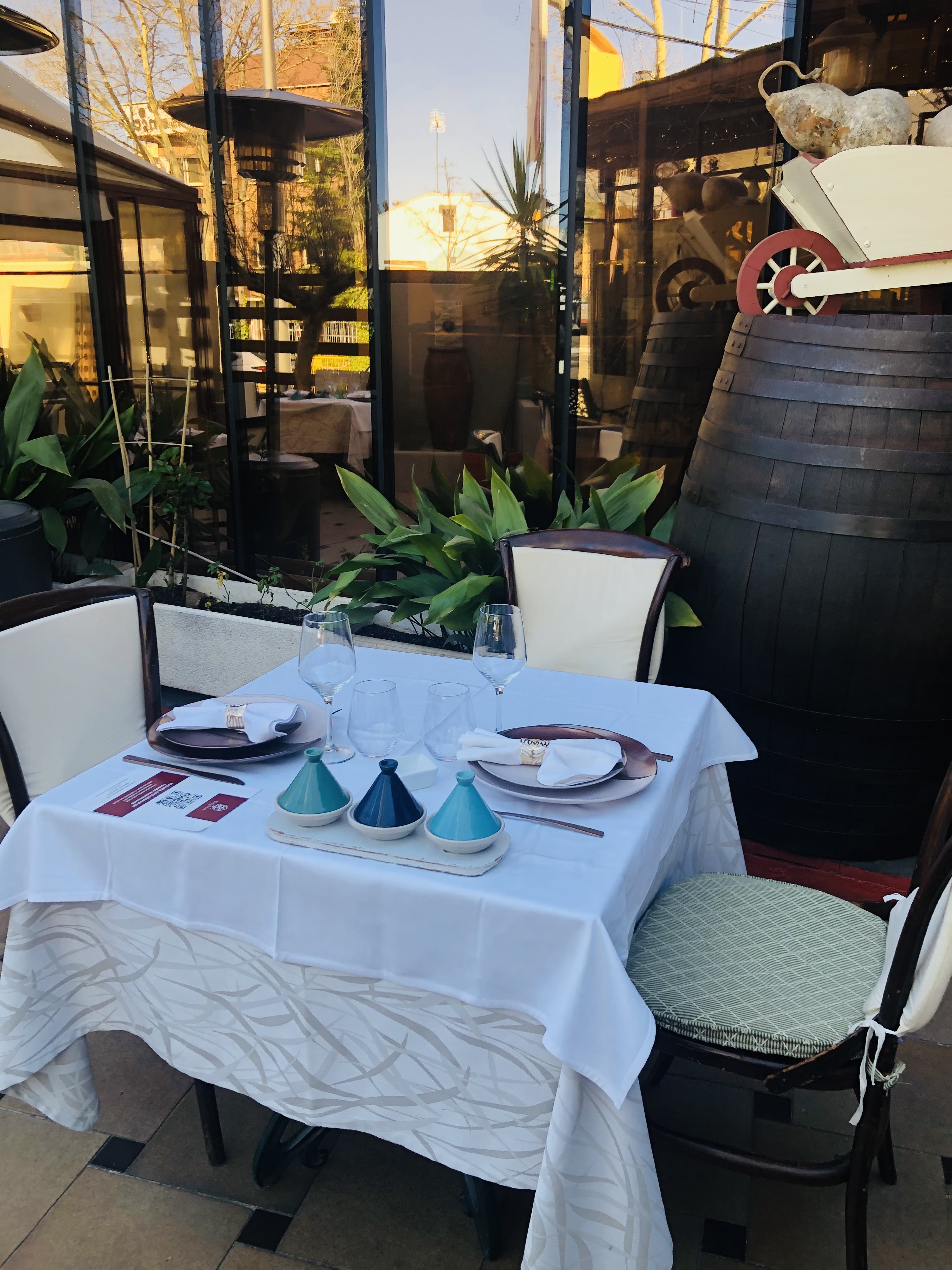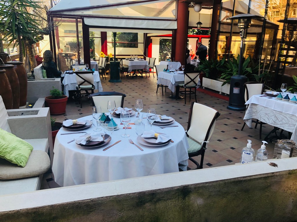 El restaurante se encuentra en una zona muy tranquila, tiene varios espacios, uno de ellos en estos tiempos muy preciado, una bonita terraza que conserva la elegancia del resto del local con mesas completamente vestidas, servilleteros y bajoplatos, que la convierten en un acogedor espacio al aire libre.
