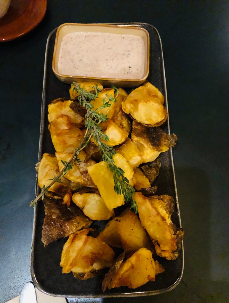 De Cosecha probamos las Patatas al tomillo con mayonesa de Kalamata y albahaca,