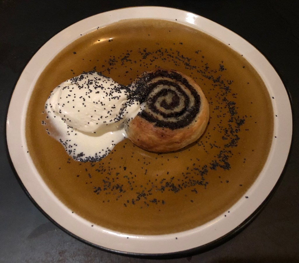 Pasta filo rellena de amapola y pasas con helado de miel de la Alpujarra, un sabor que no te deja indiferente