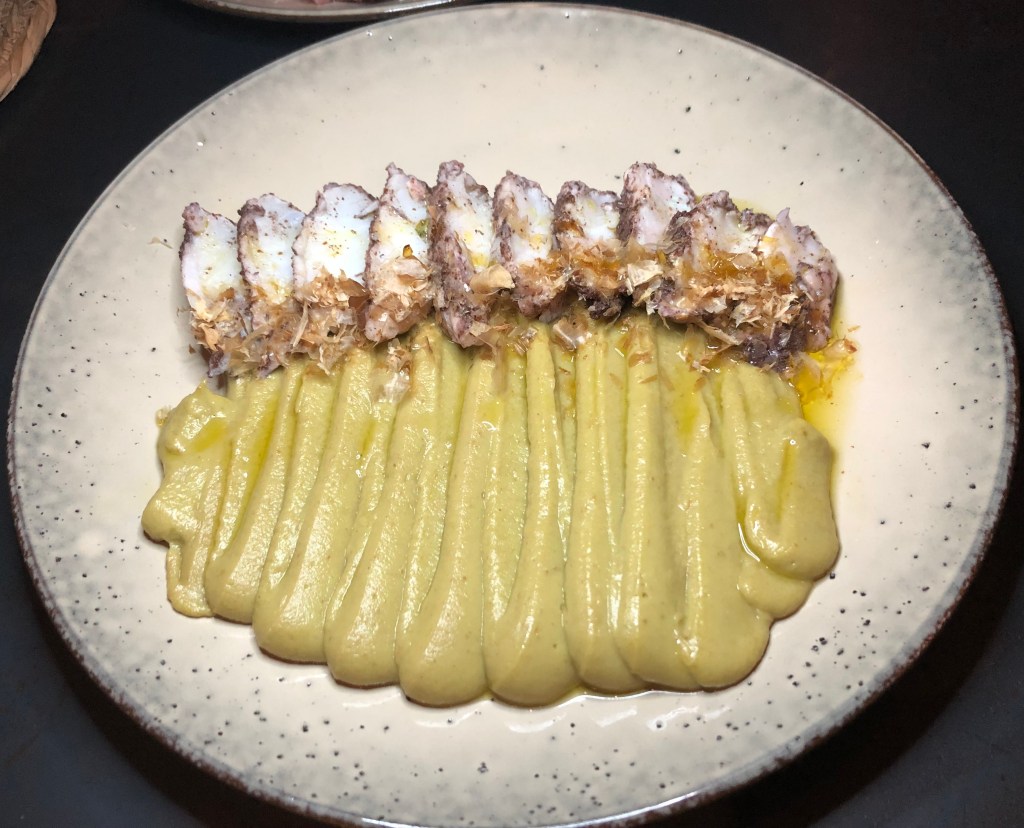 Rescatan una receta clásica, la del rape alangostado, solo que aquí en vez de hacerlo con pimentón lo hacen con zumaque una especia acida de sabor que se emplea mucho en la cocina árabe. Está delicioso.