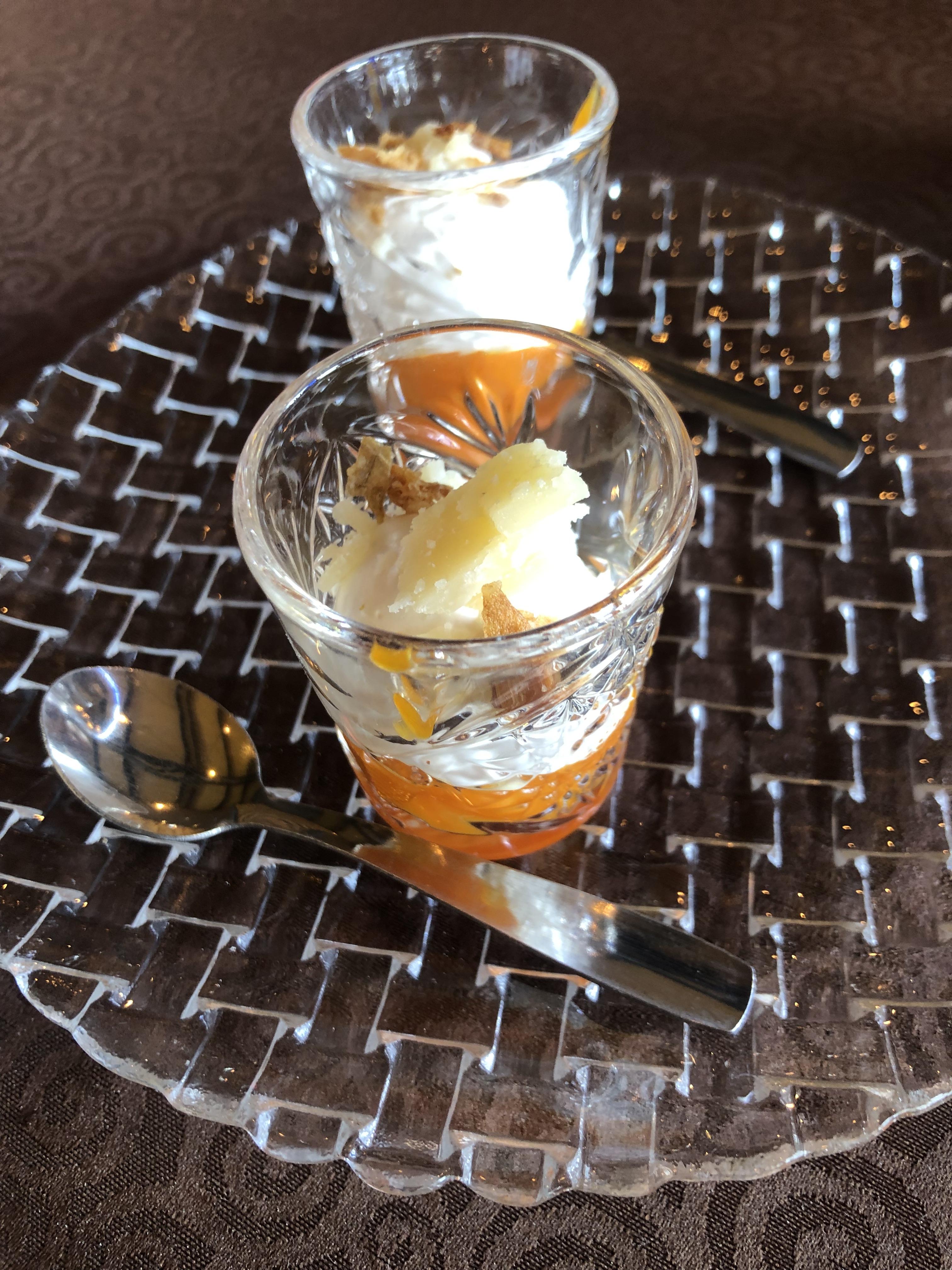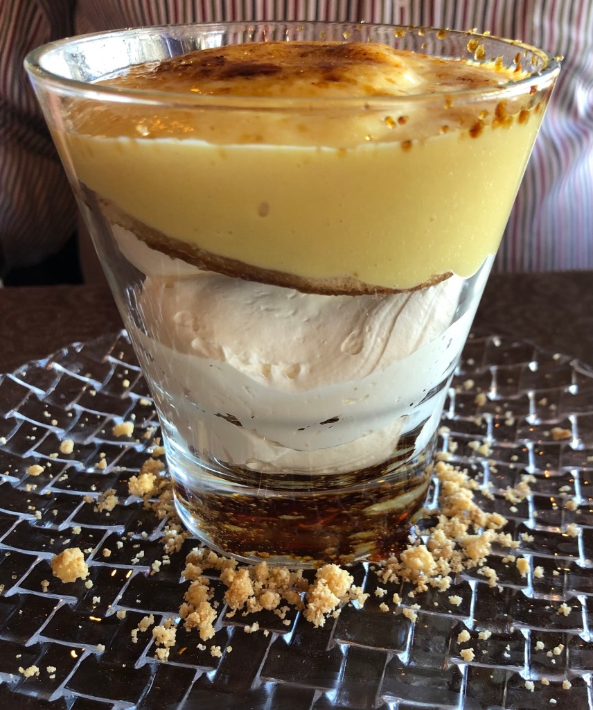 Y un original Goxua, el postre típico del país vasco con un bizcocho borracho crema inglesa y nata montada.
