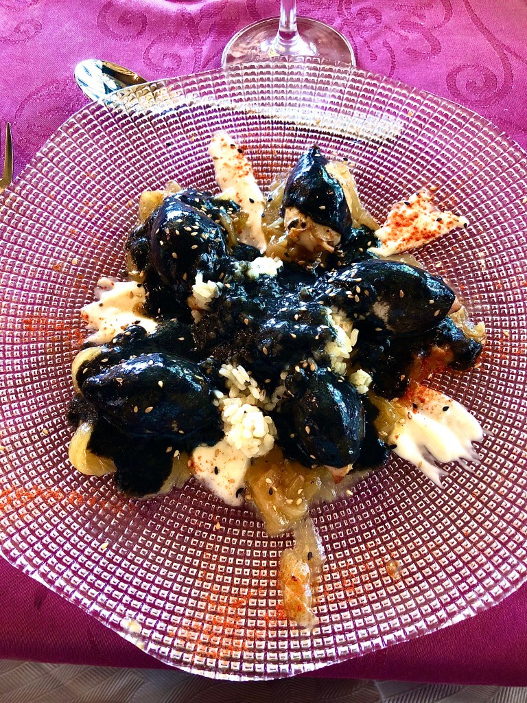 Uno de los fijos de la casa es su Timbal de setas, ¡tremendo!, un salteado de setas con gambas al ajillo, gratinado al horno con ali-oli de queso fresco y miel. Yo recomiendo compartirlo es contundente, y así tienes oportunidad de probar más cosas