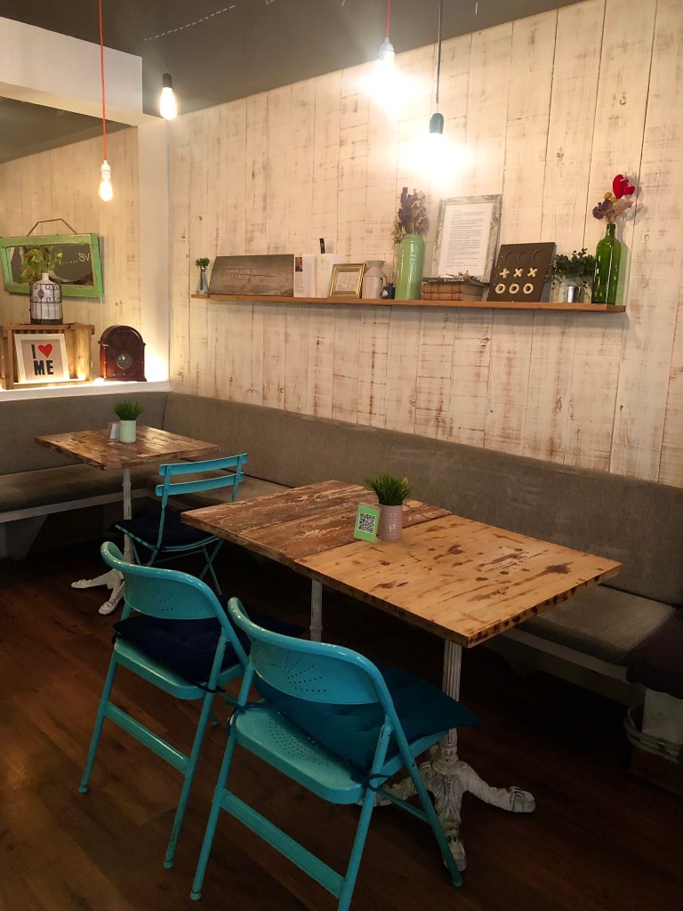Tienen una pequeña terraza que como el tiempo no acompañaba no pude probar y que se antoja muy agradable en verano ya que el restaurante está en una calle peatonal más tranquila.