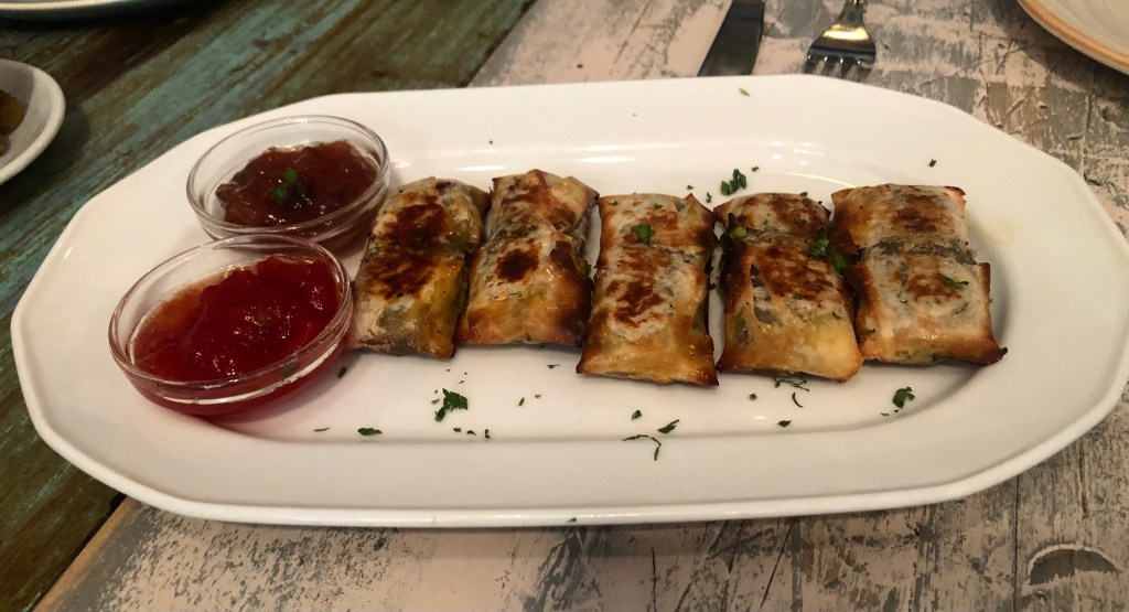 Probamos los Saquitos de picadillo de morcilla y reineta, los acompañan de unas ricas mermeladas de tomate y de higo