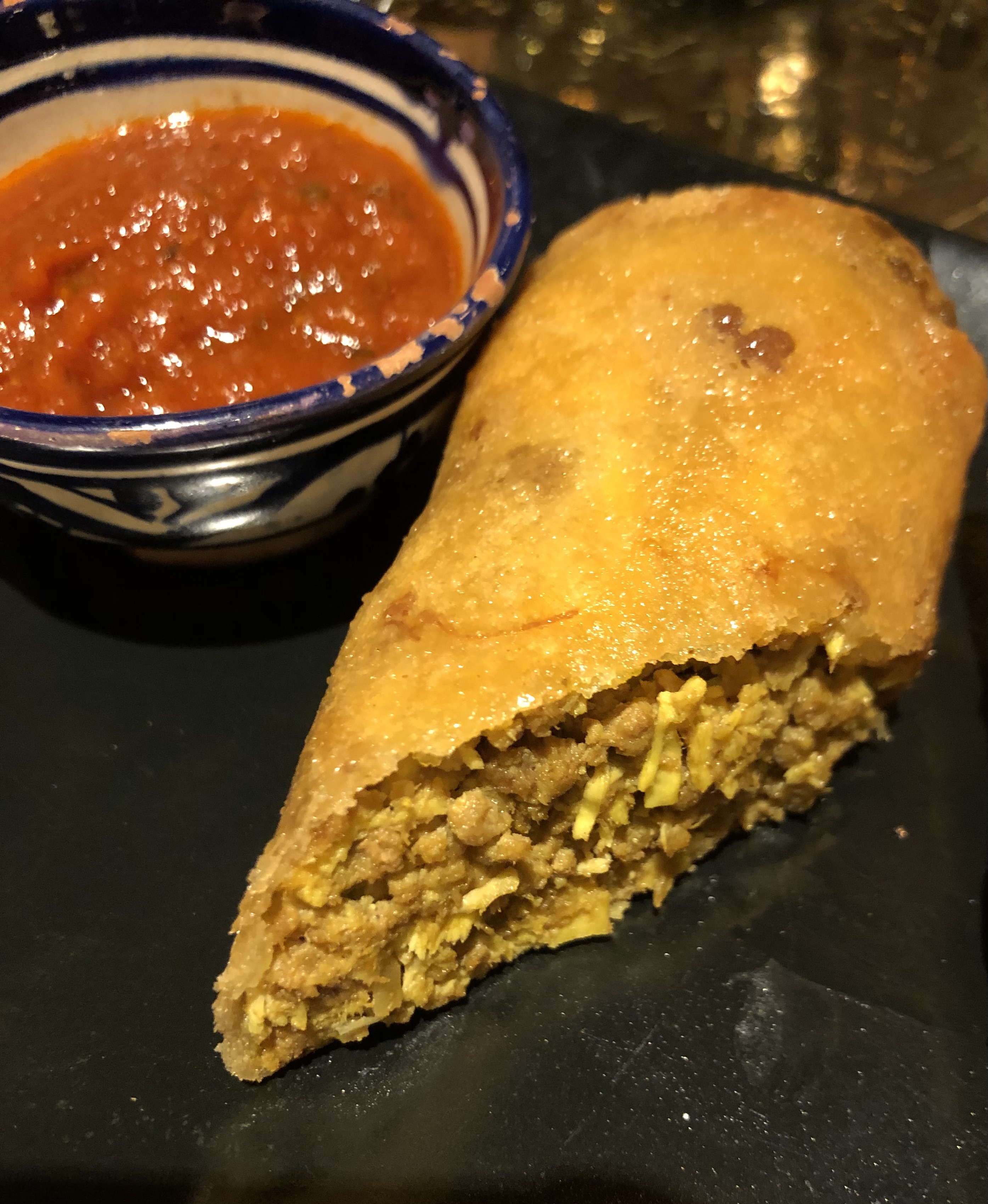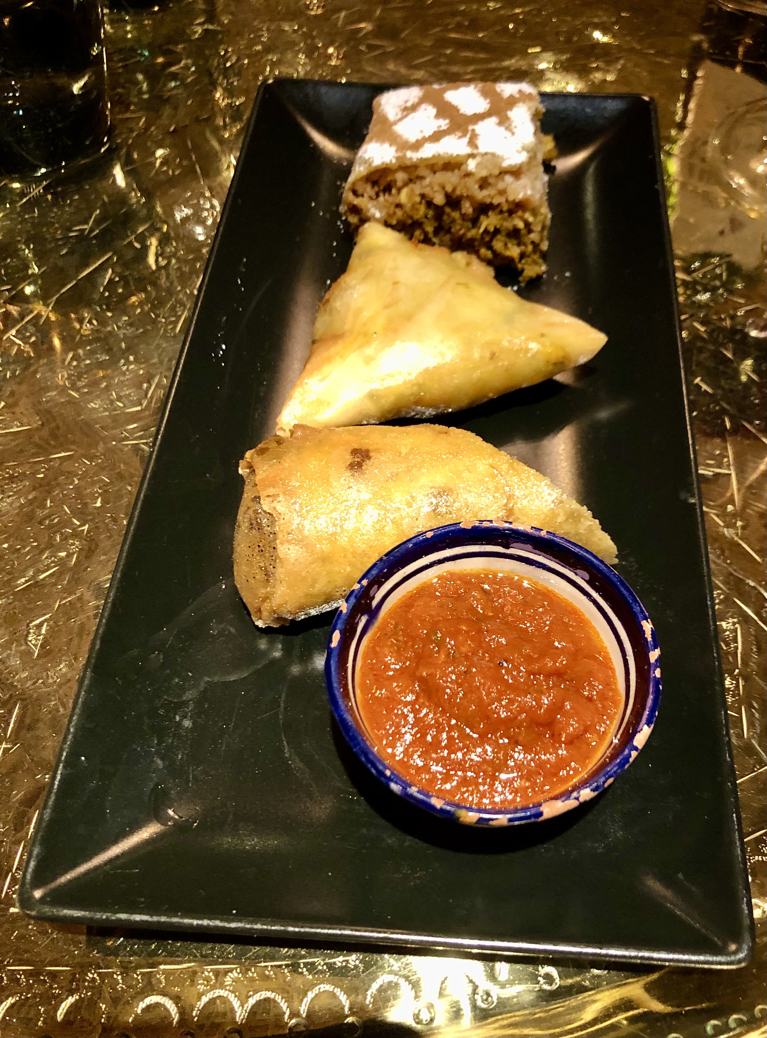 Briwat de verdura, una rica empanadilla y Hojaldre Al-Mounia, también relleno de carne, delicioso.