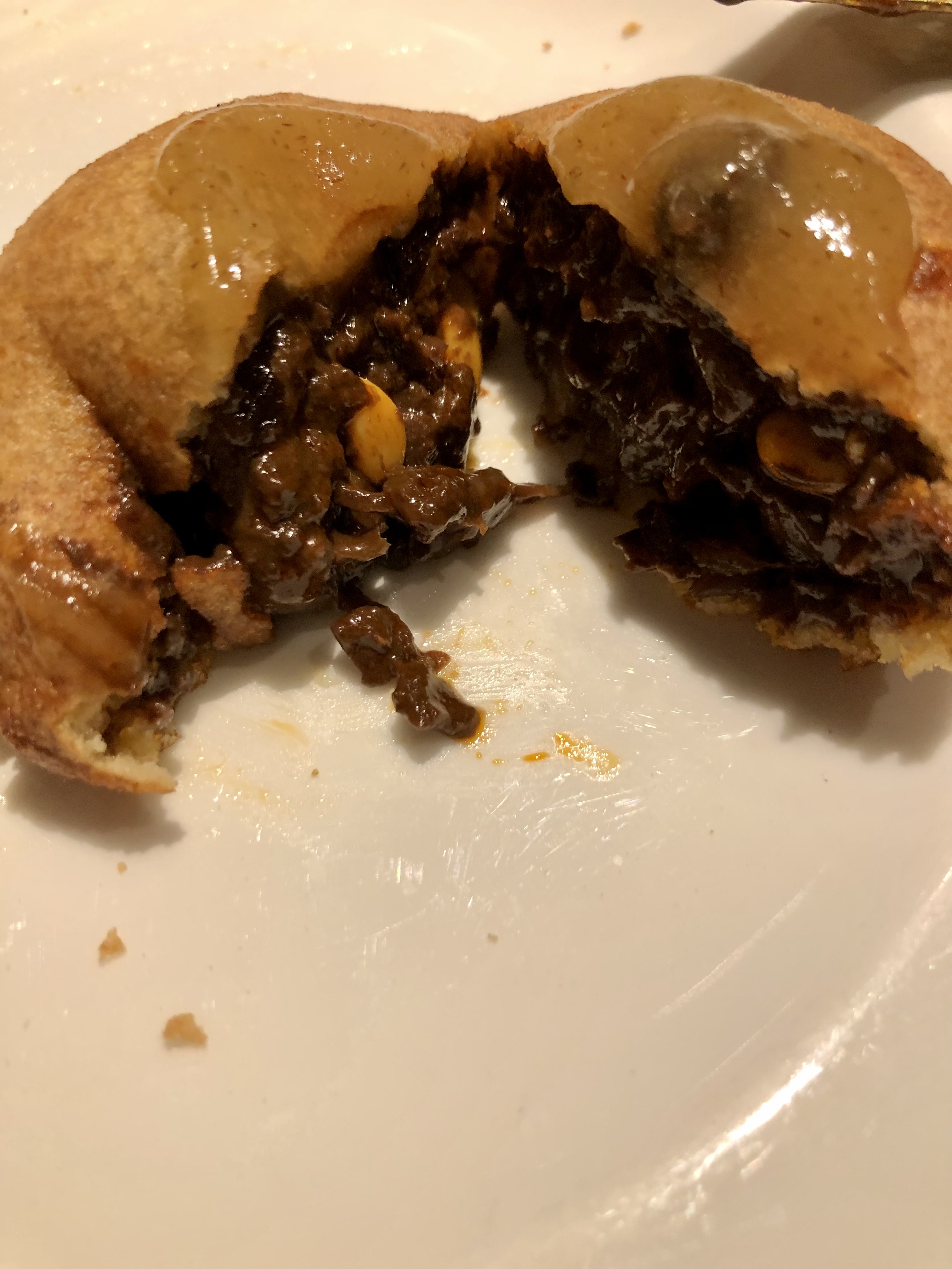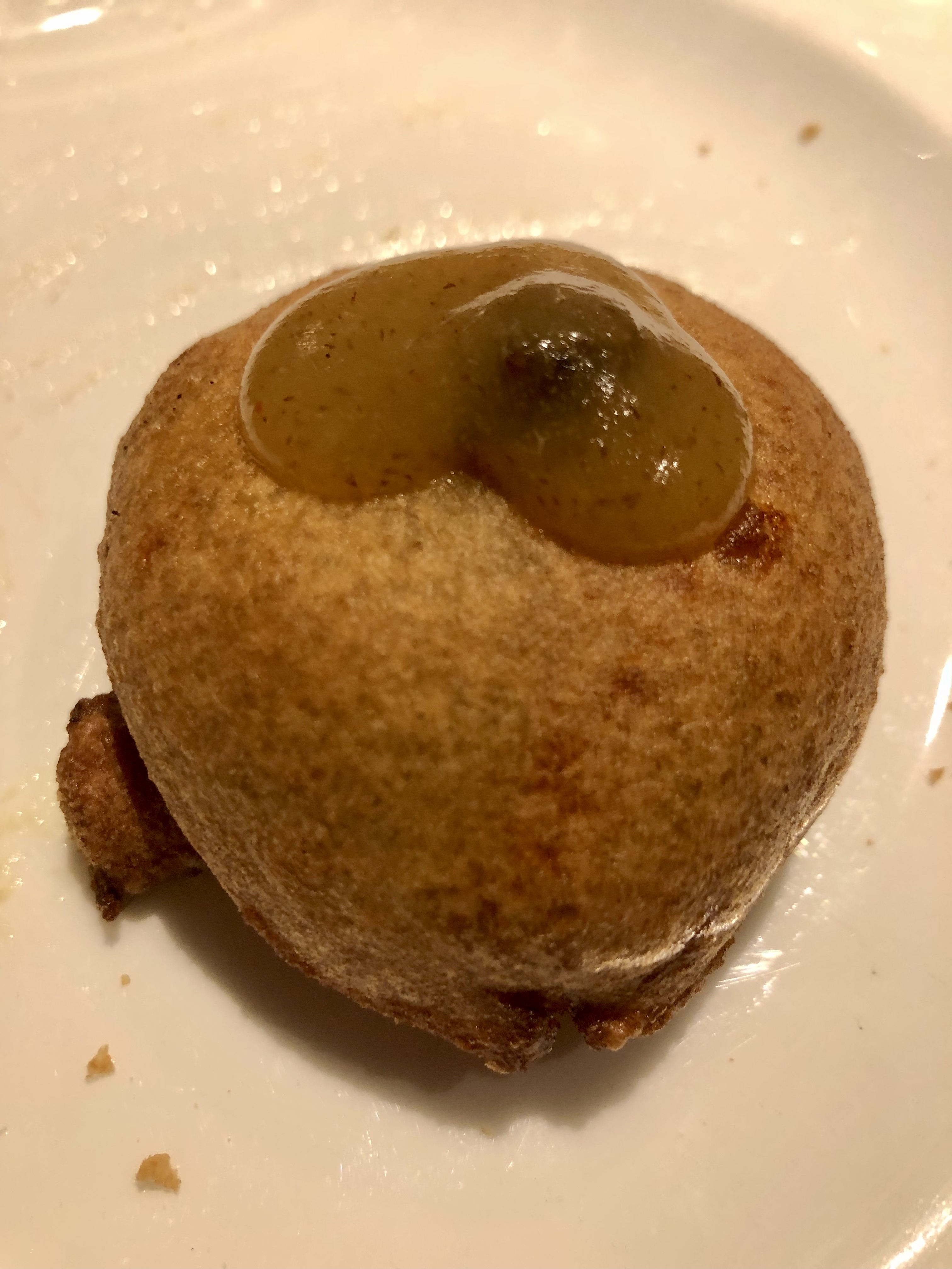 Buñuelo de morcilla con mermelada de pera. Exquisito y altamente recomendable.