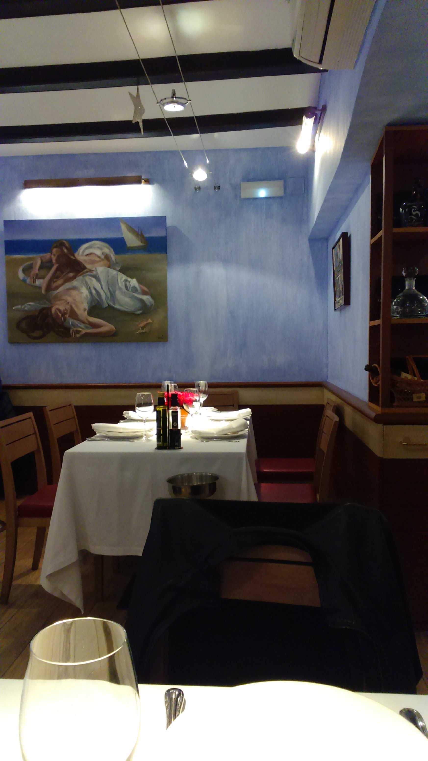 Como muchos otros restaurantes de playa que tienen terraza, lo mejor queda dentro. Optamos por comer en el interior aunque hiciese buen día y creo que es un acierto, menos masificado, más coqueto, acogedor y familiar, aunque estuviese lleno.