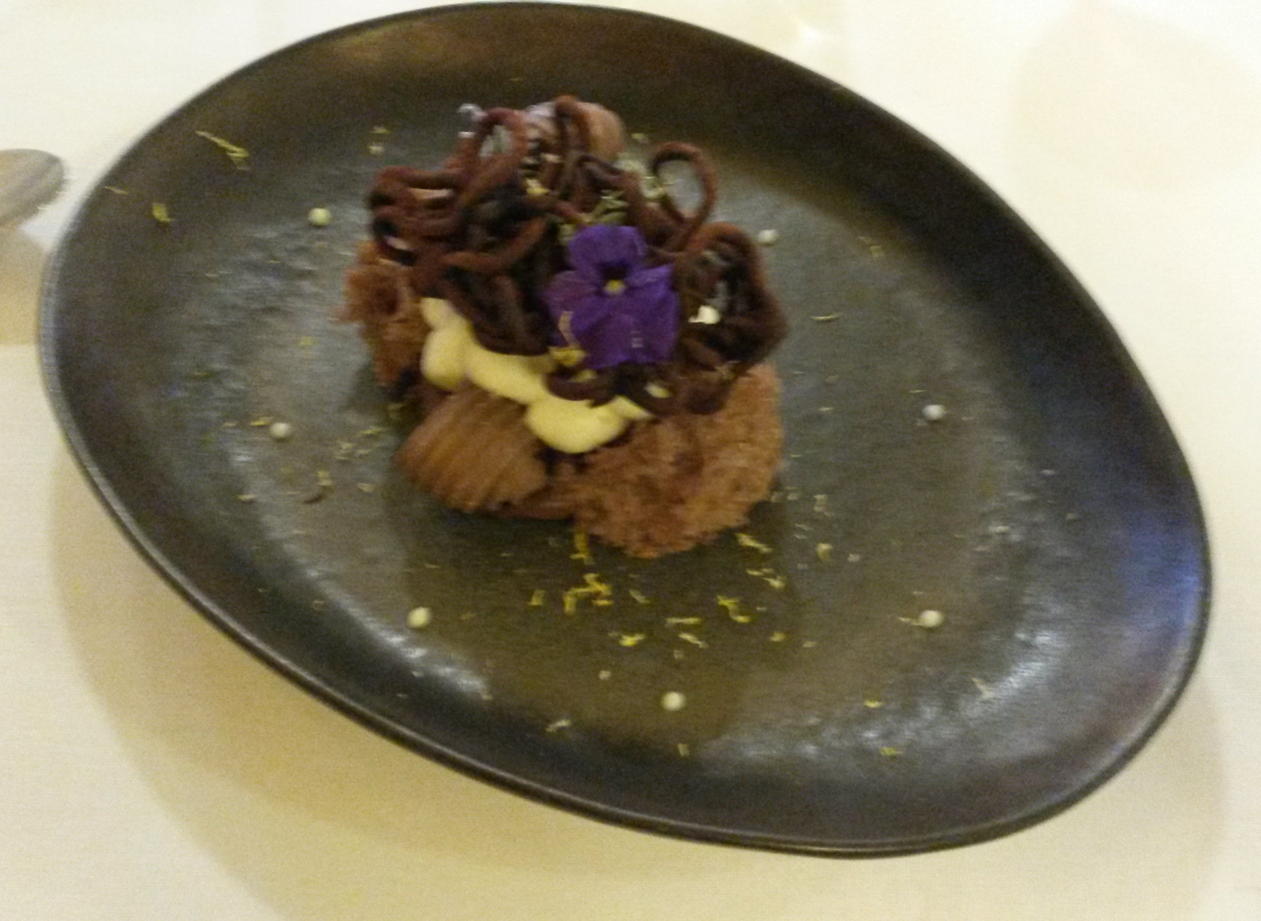 Los segundos abundantes para estómagos complacientes. Una paletilla a baja temperatura y un Bacalao con su muselina, riquísimo, del que me dio mucha pena dejar la mitad, tenía que dejar hueco para los postres, que según los veía pasar hacia otras mesas, no podía perdonar no probarlos.