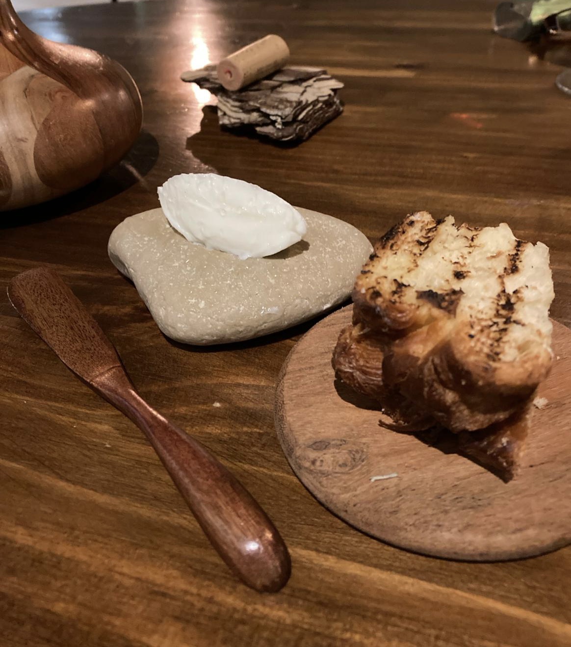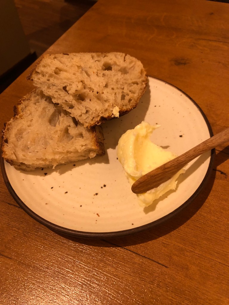 Todo ello acompañado de un pan delicioso, que compran en una panificadora cercana Panifiesto con una mantequilla casera de la que no te cansas y un O Extranxeiro de la Ribera Sacra que combinó a la perfección con todos los platos.