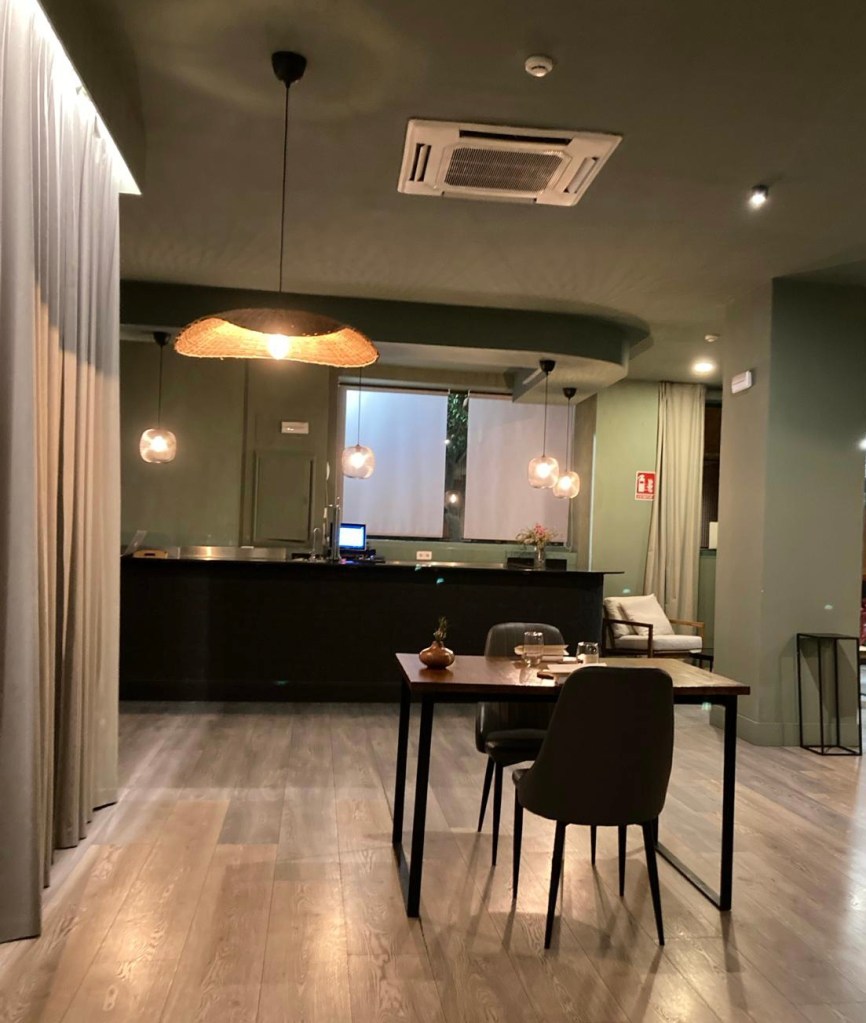 Lo primero que sorprende es su decoración. Una sala grande con solo cuatro mesas, lo que ya da idea de intimidad y tranquilidad.