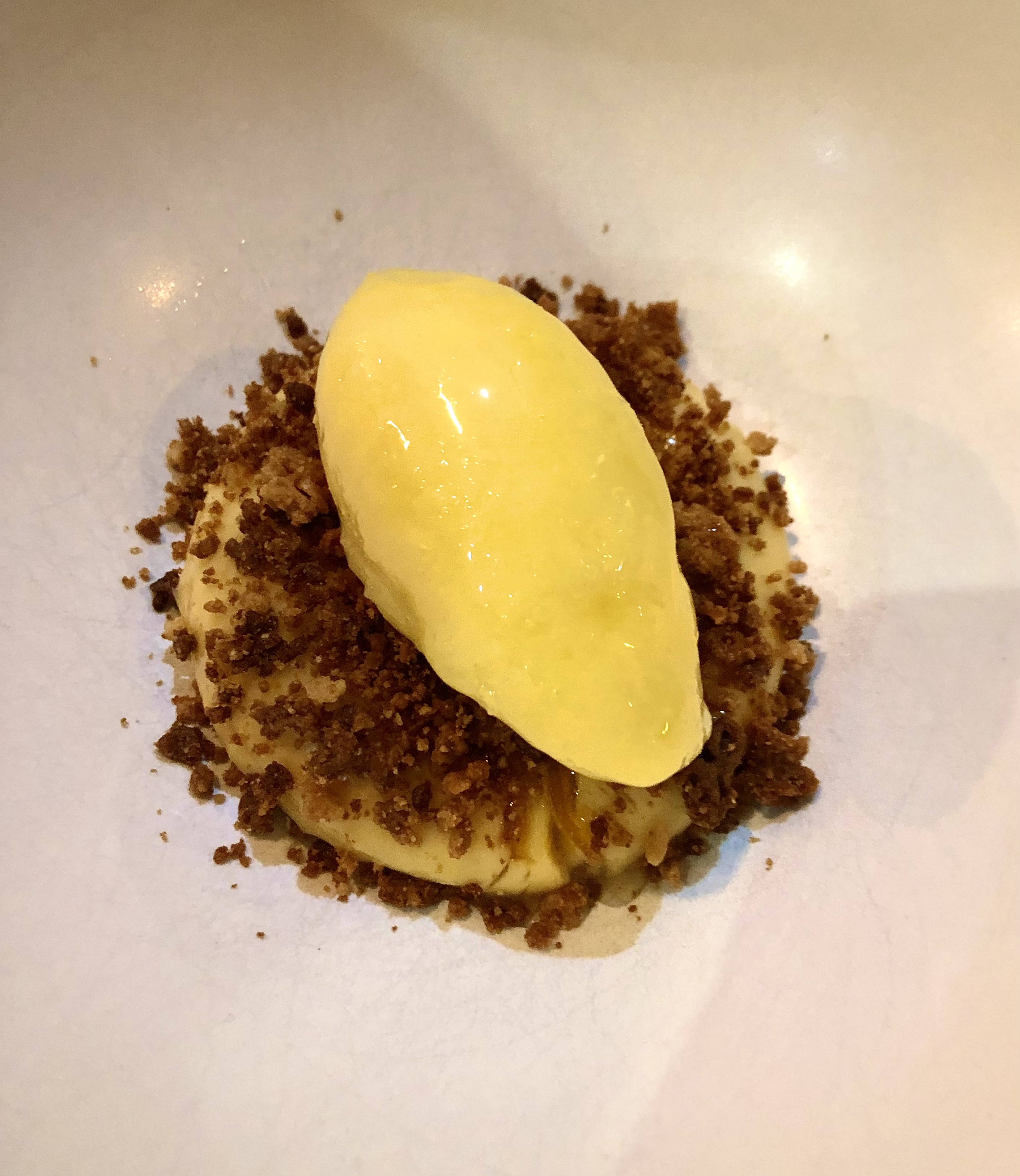 Letuario: crema y helado de naranja con su ralladura al aguardiente y crumble de miel