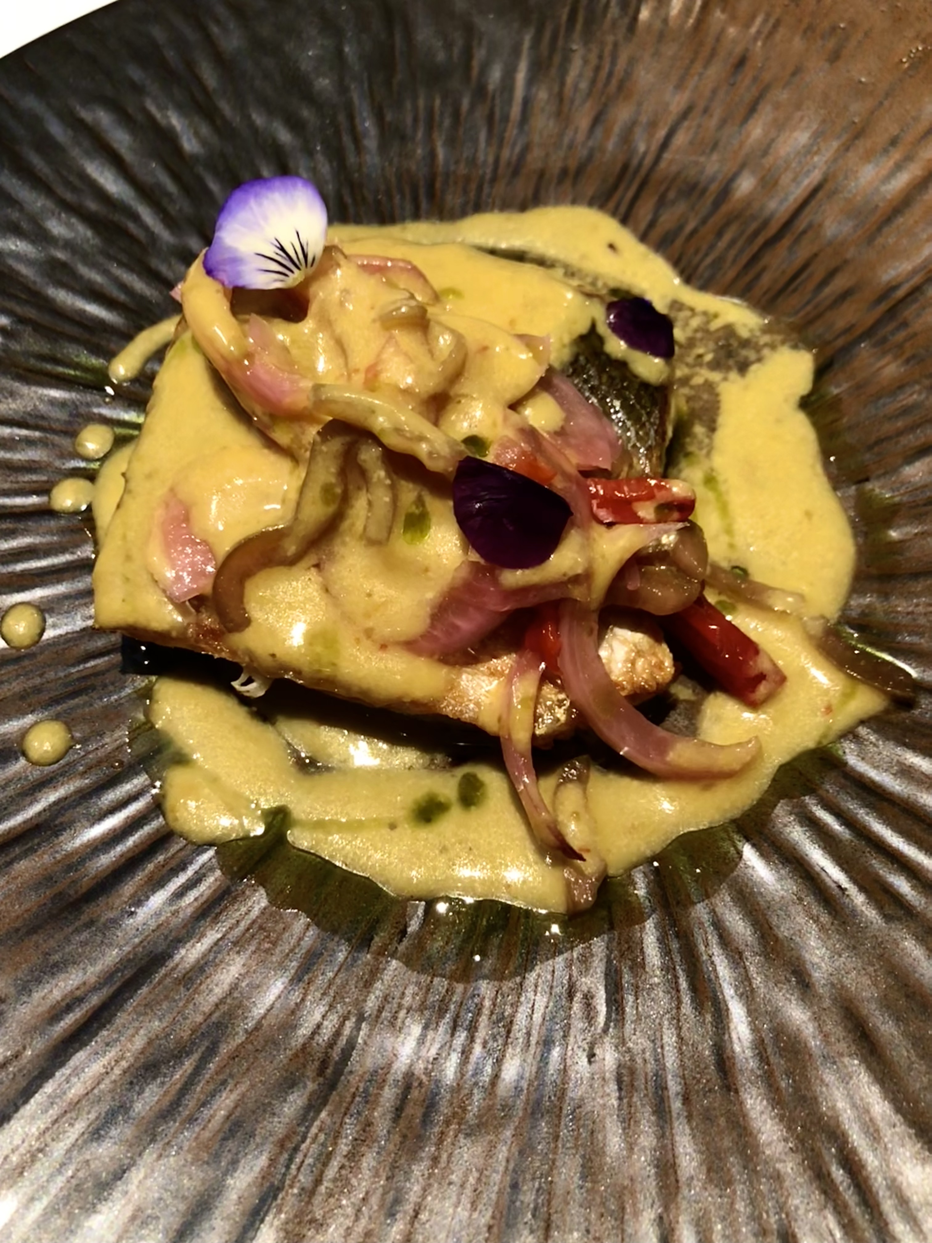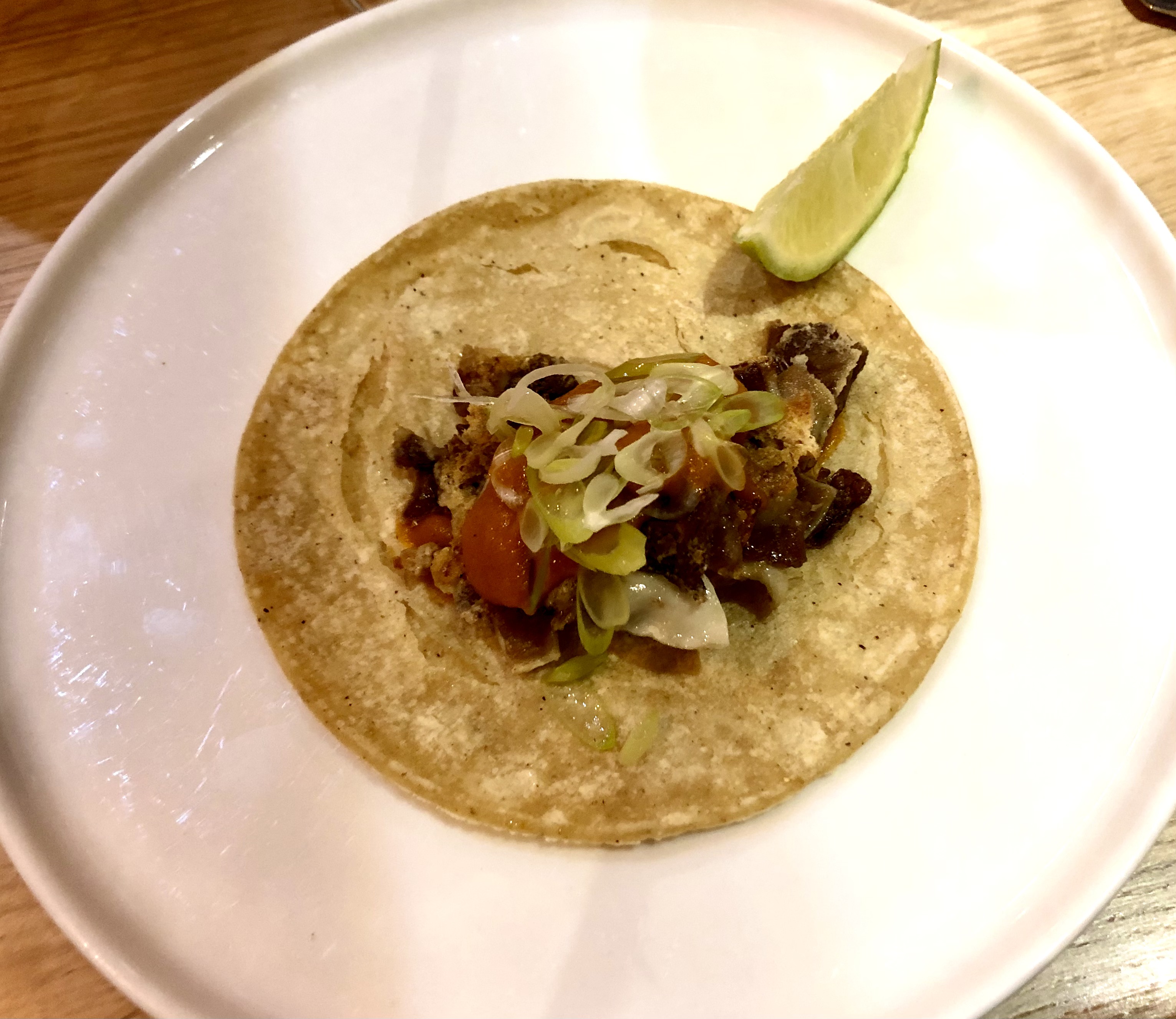 Delicioso. La vieira hecha a la plancha con un kimchi crujiente que le da el toque picante y la lima debajo a la que hay que morder y arrastrar el cítrico y que le da un sabor especial.
