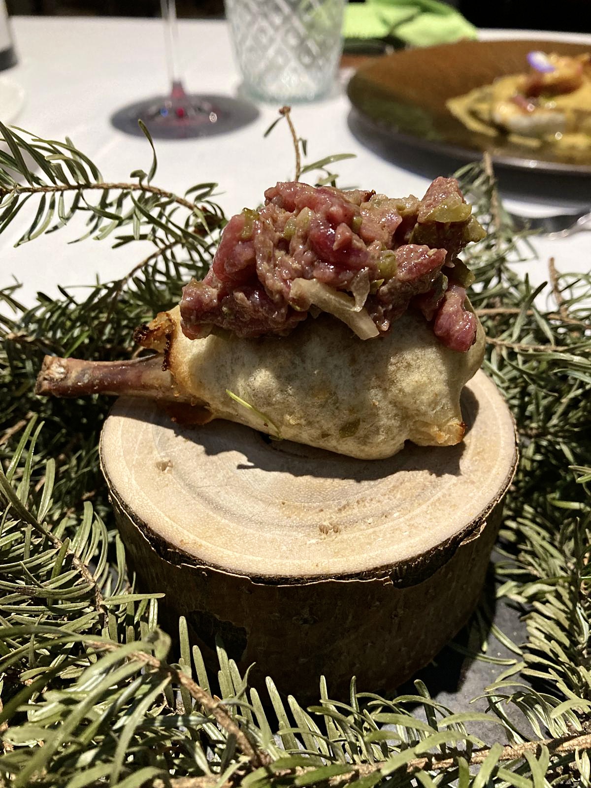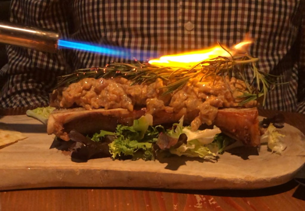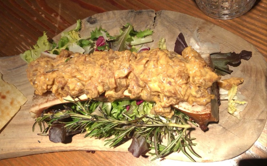 Imprescindible el Tartar de atún rojo con mayonesa picante de romero sobre tuétano de vaca