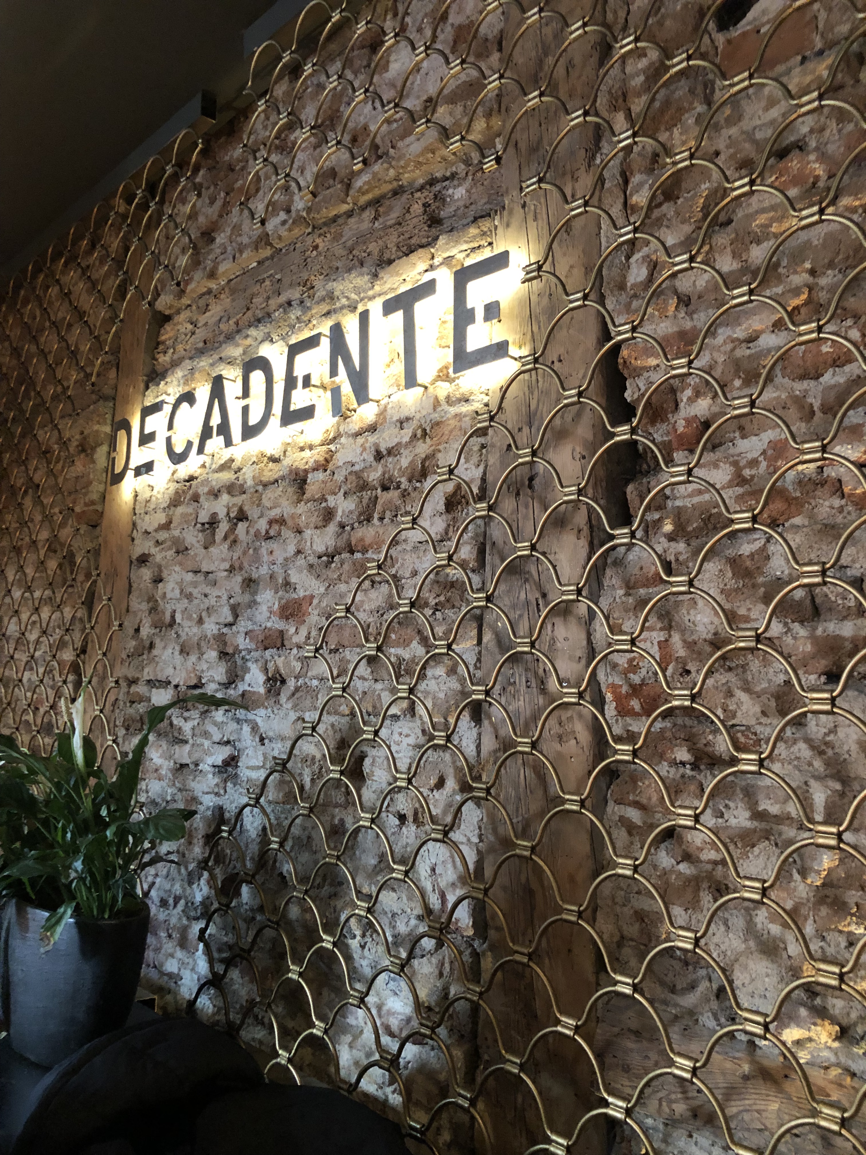 La decoración con multitud de detalles, en una mezcla ecléctica, conserva algunas de las viejas vigas de madera del antiguo local. Una enorme barra preside la planta de calle donde se puede picotear y topar tapas de una manera más informa, y en la parte baja una cava donde disfrutar de cócteles y música.