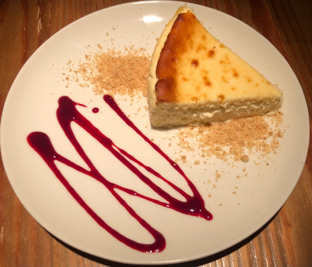 Tiramisú Andaluz versión “CheeseCake”, con una base de pionono, crema de cabra Payoya, café y Pedro Ximénez.