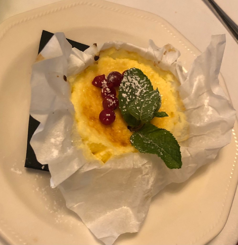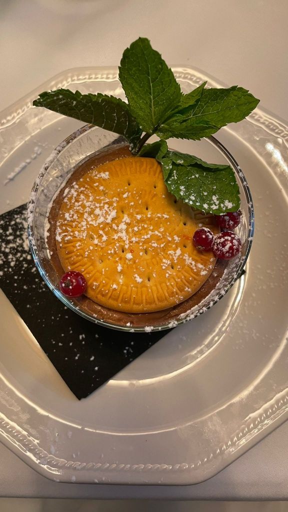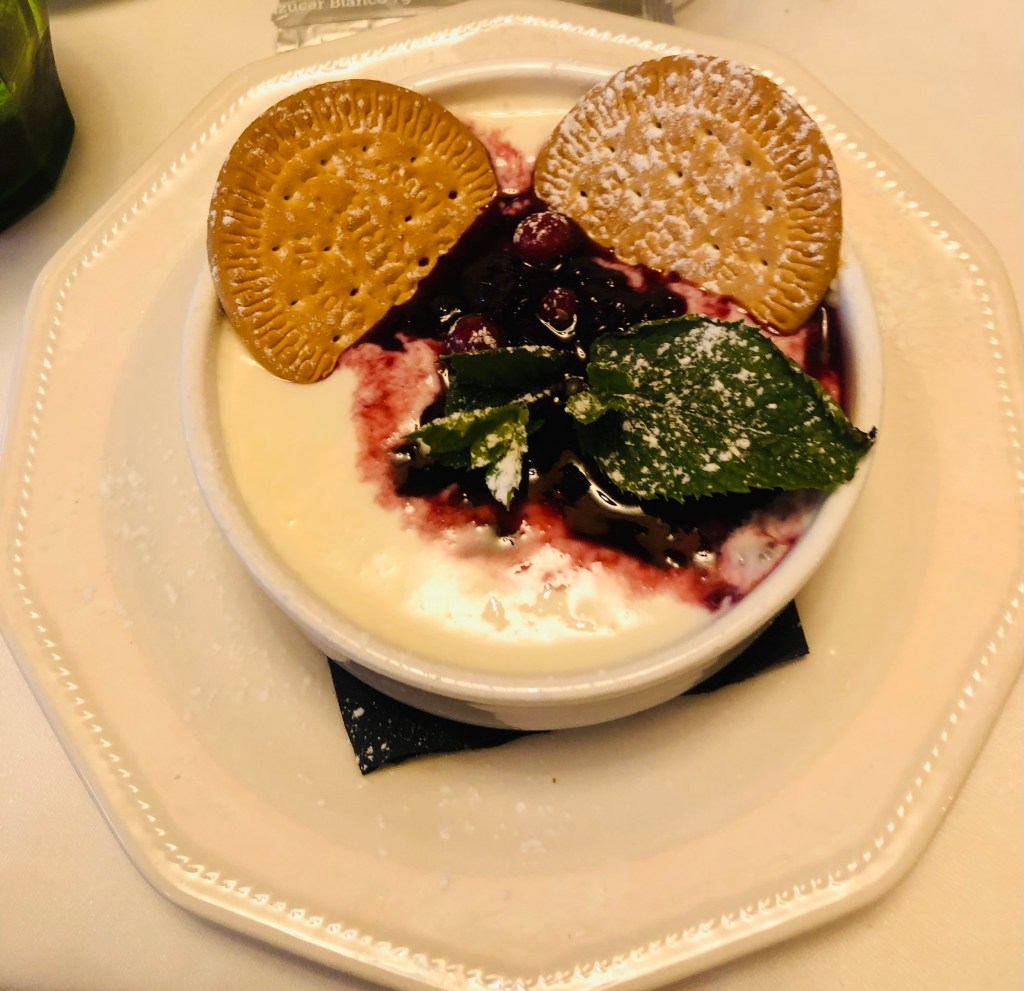 Tuvieron el detalle de invitarnos a un vino dulce en el postre y unos pequeños Petit fours con el café.