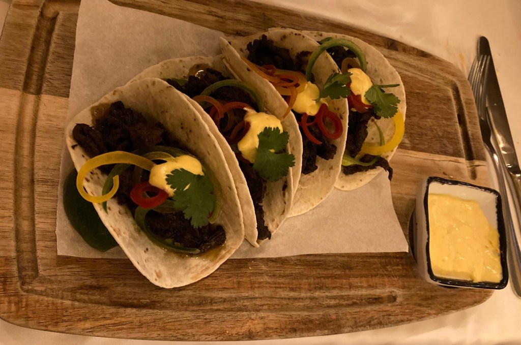 Tacos de oreja a la plancha con salsa brava