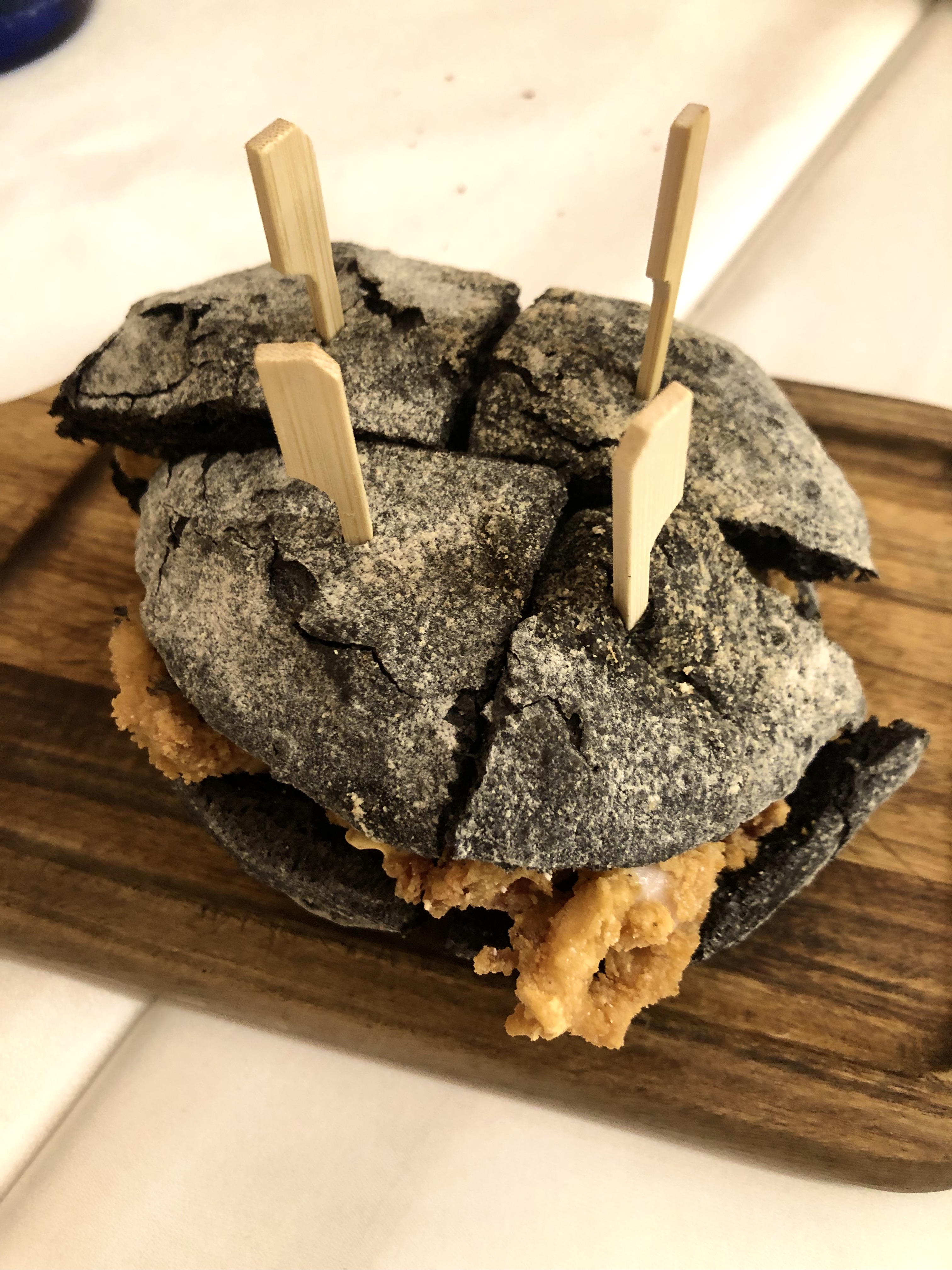 Está hecho con ese chocolate de cardamomo y café y lo presentan con un helado de leche de oveja infusionado con clavo, haba tonka y té