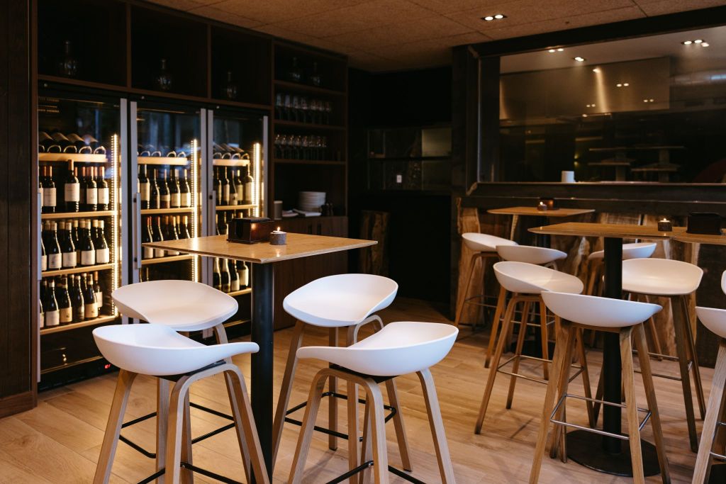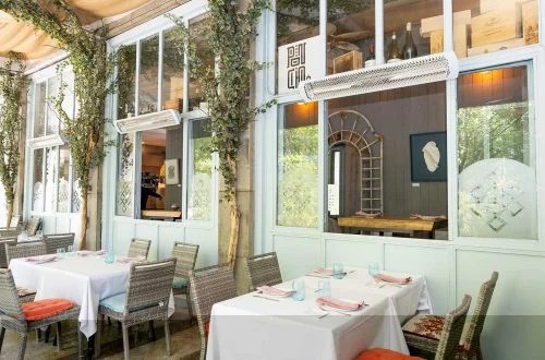 La cocina abierta es con lo primero que te encuentras. Un pasillo con mesas altas para un picoteo más informal da paso a la sala principal. Posee también una amplia terraza cerrada en invierno y climatizada.