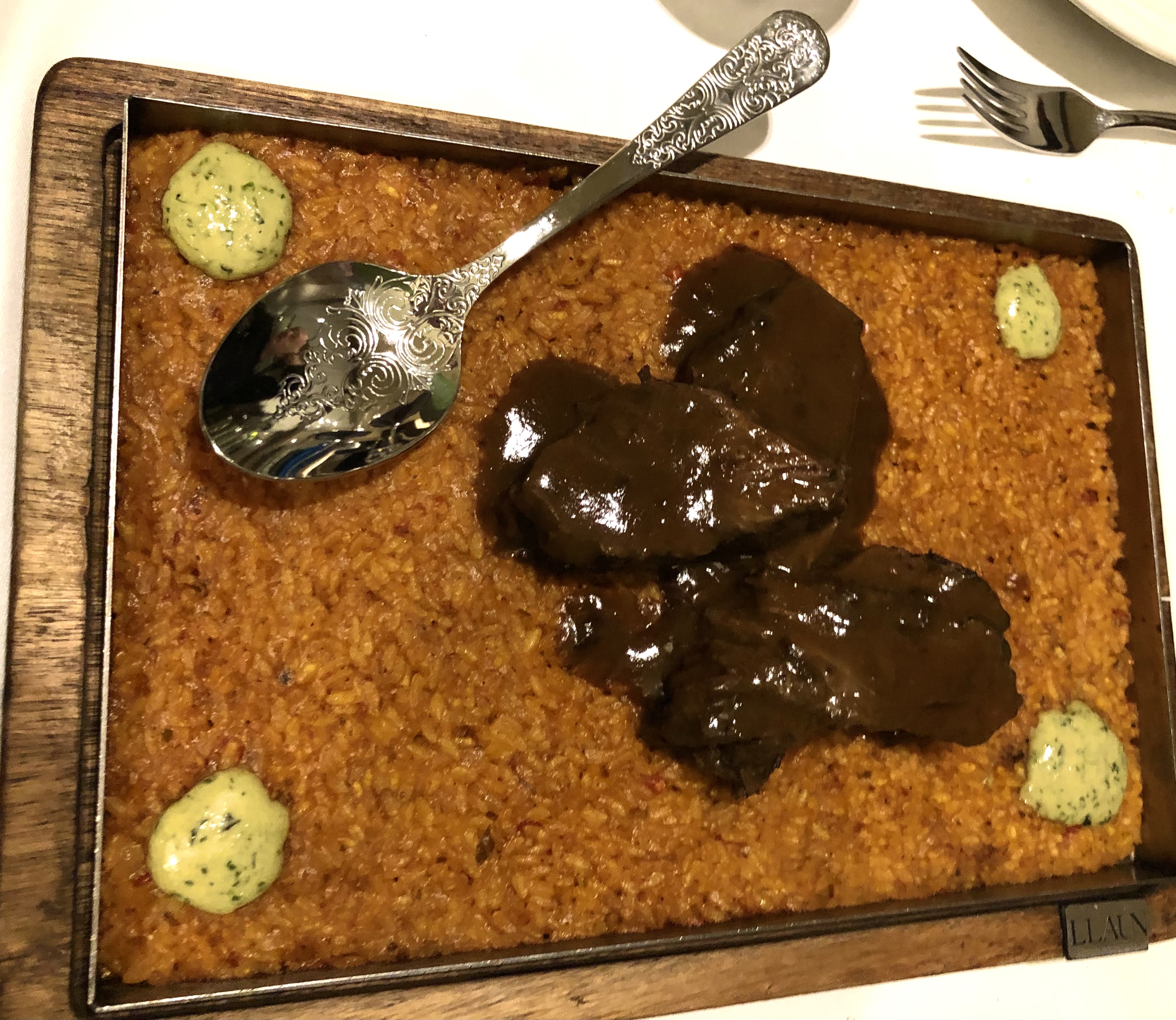 Llauna como no podía ser de otra manera basa su cocina en esta manera de cocinar, en un horno al carbón y consigue en sus platos un alto valor gastronómico.