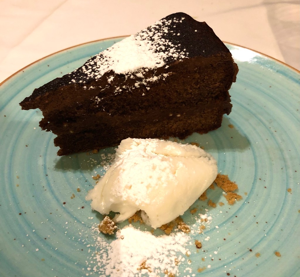 Tarta de chocolate km0, haba tonka y leche de oveja.