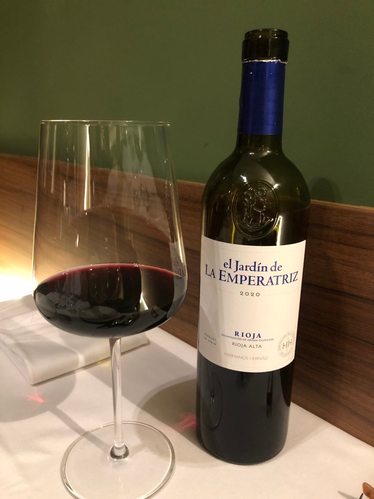 Su carta de vinos ofrece referencias muy interesantes. Una de las que probamos fue El Regajal Selección Especial 2022 D.O. de Madrid que se está confirmando como uno de los grandes vinos de la región.