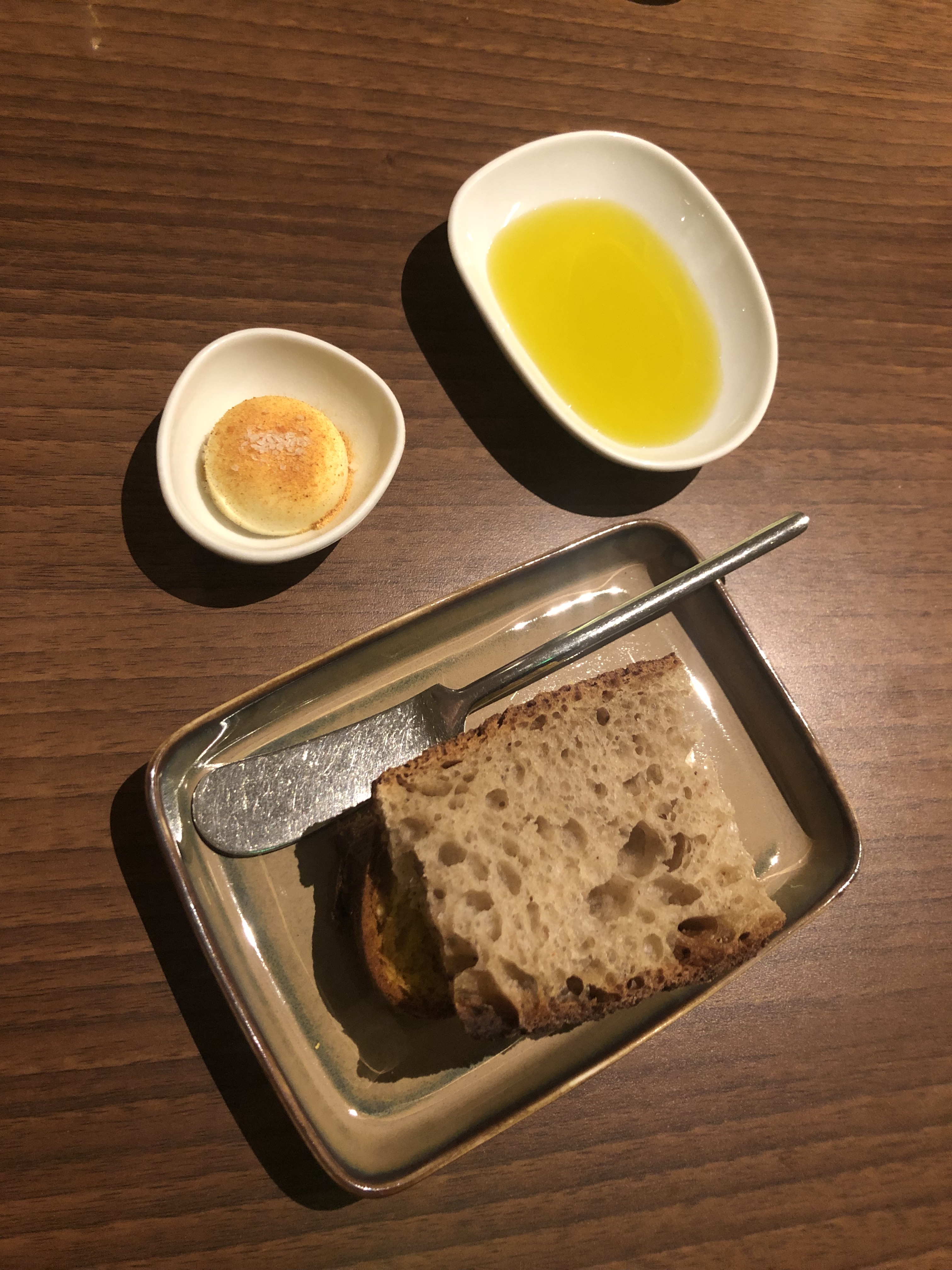 El siguiente es como un alto en el camino, para probar su Pan de masa madre, un brioche y una mantequilla casera con aceite metáfora.
