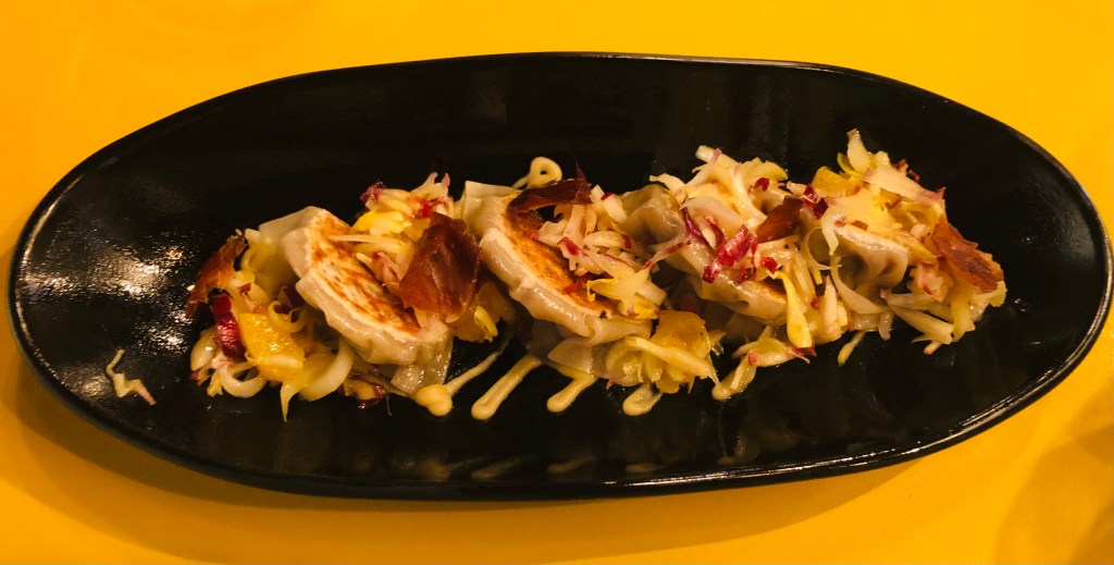 Empezamos con unos Dumpling de pollo a la plancha