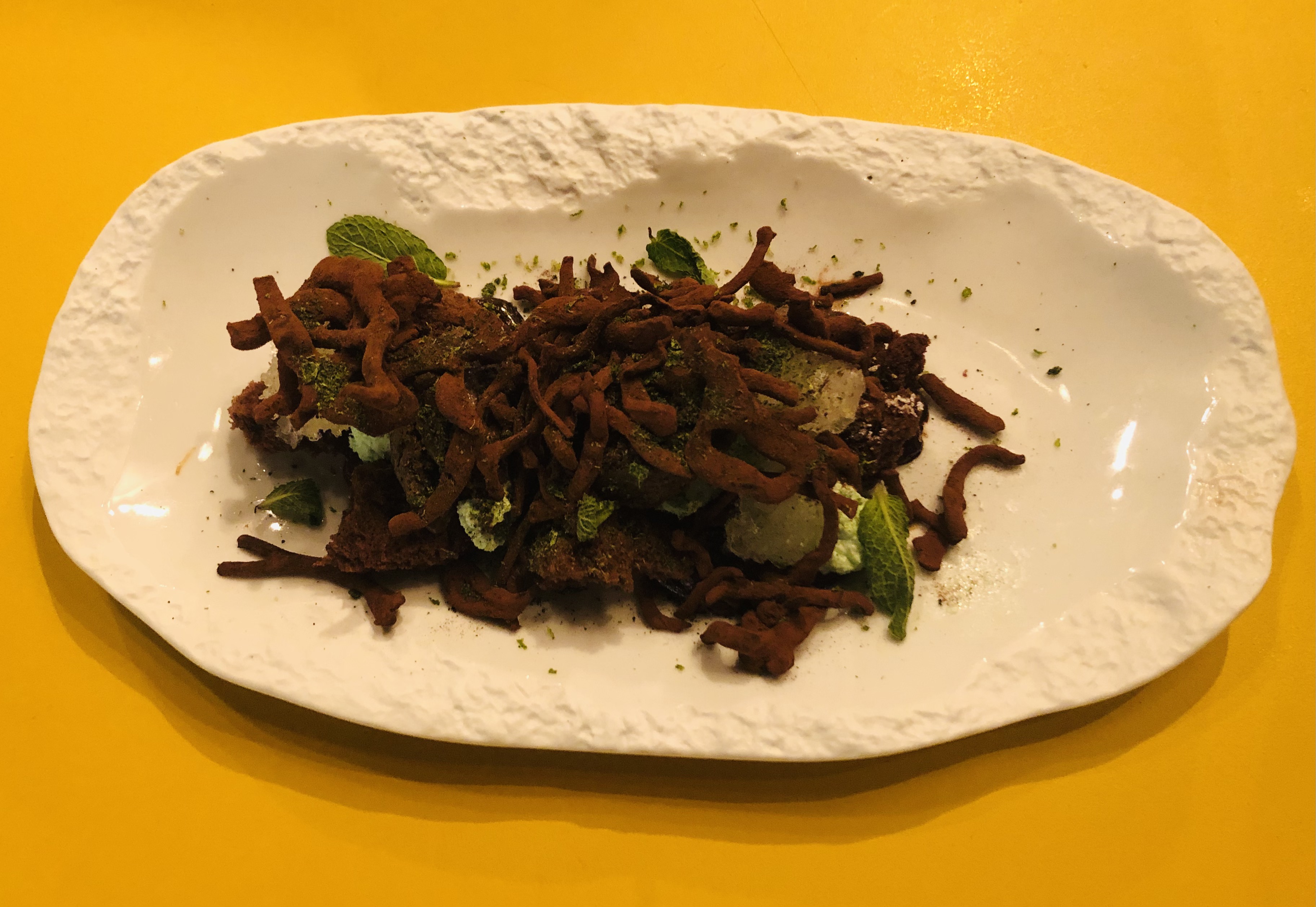 Y un goloso Chocolate en textura con sorbete y nube de menta