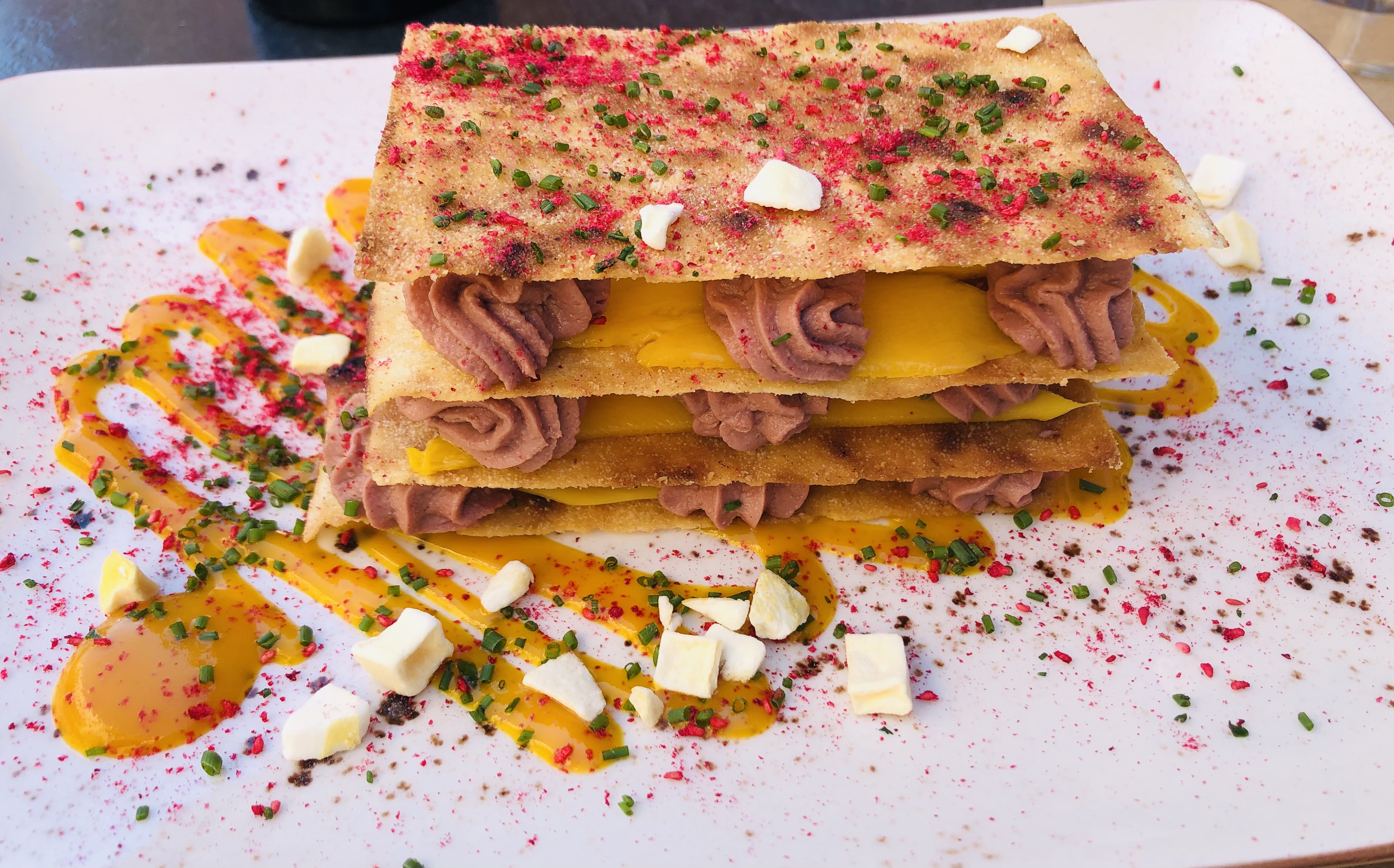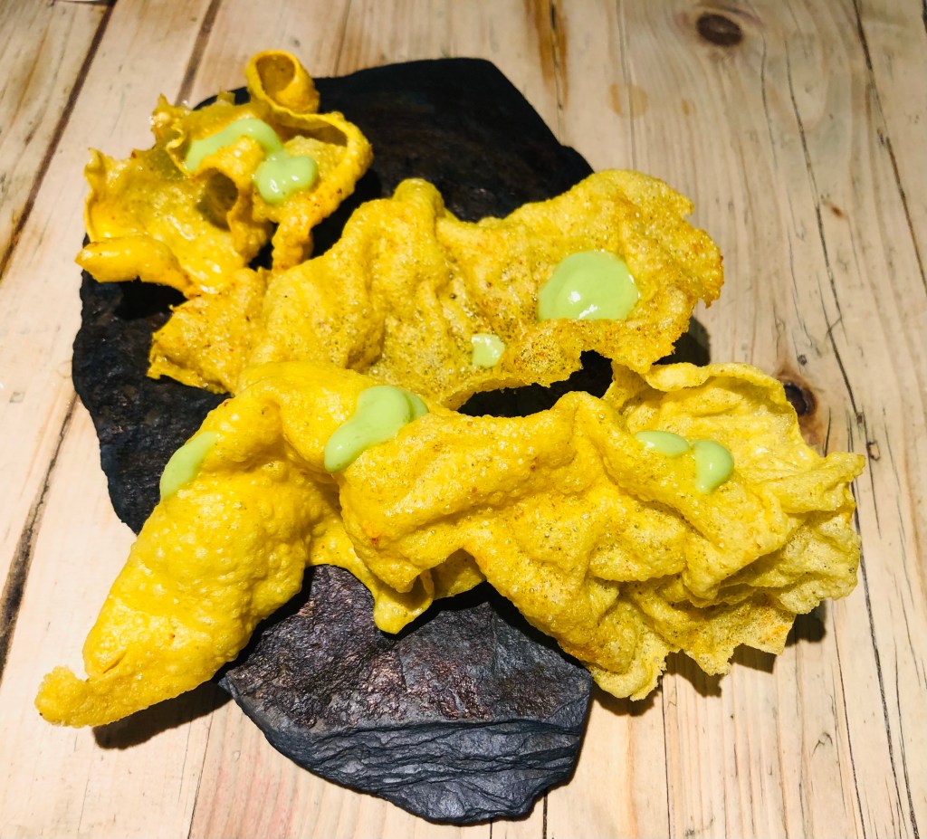Antes de entrar en materia nos recibieron con un snack muy original “corteza de arroz con crema de hierbas aromáticas”.