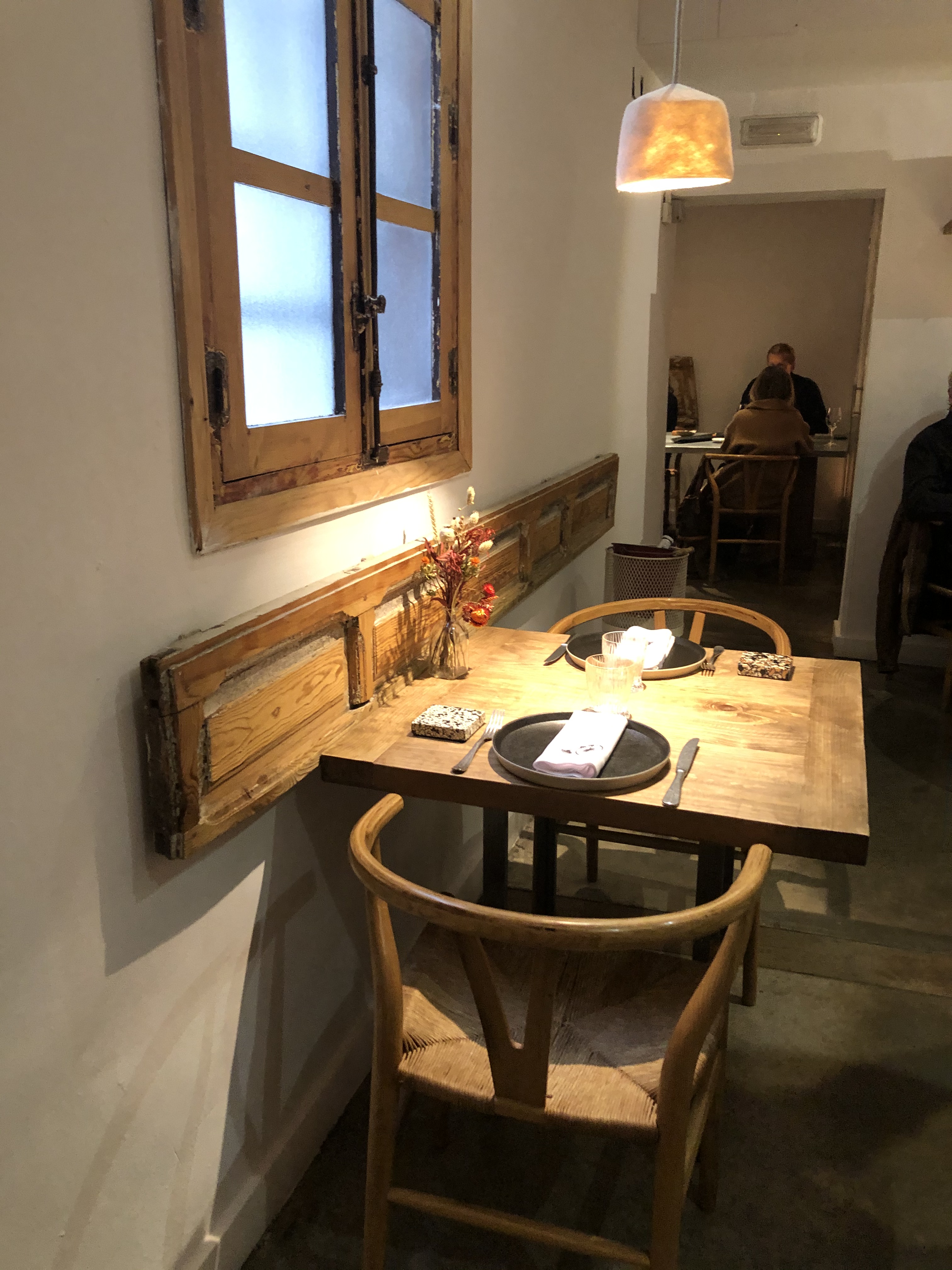 La calidez de Paloma y su equipo y la intimidad de este pequeño rincón decorado con tan buen gusto, con una buena colección de libros de cocina, la bonita vajilla, las lámparas y esos pequeños detalles salpicados en todo el restaurante, hacen sentirte como en casa.