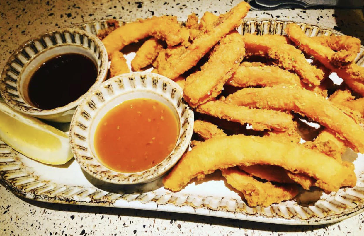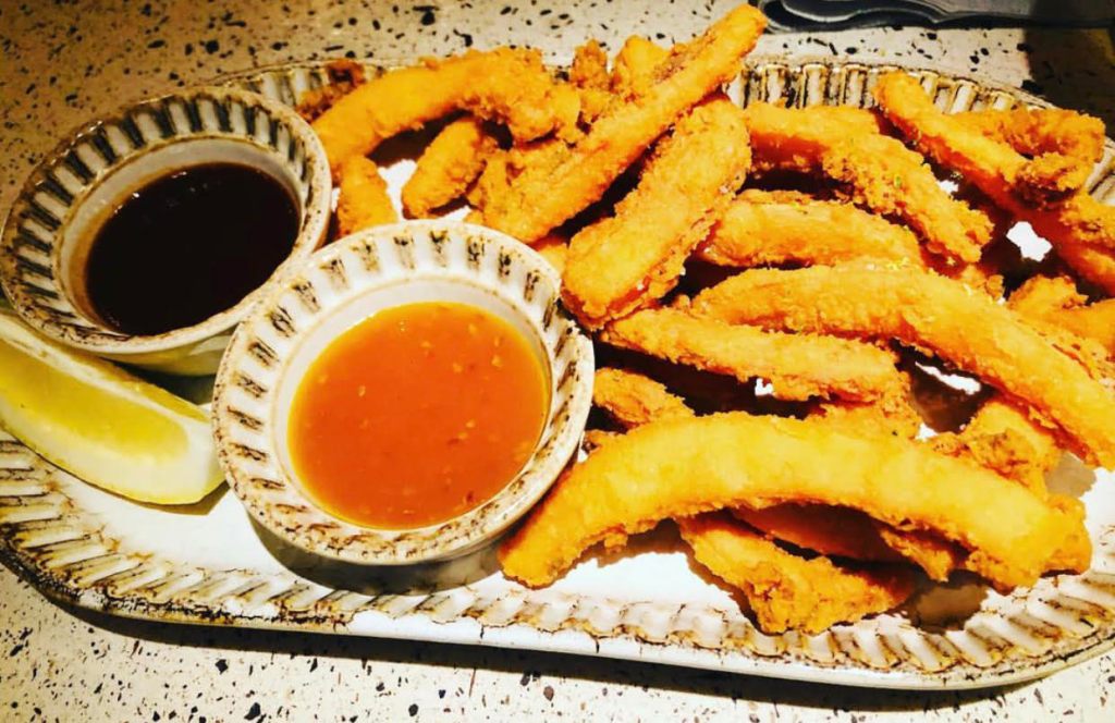 Y unas Rabas de calamar estilo Cantabria, un plato típico al que le acompañan de dos salsas hindúes.