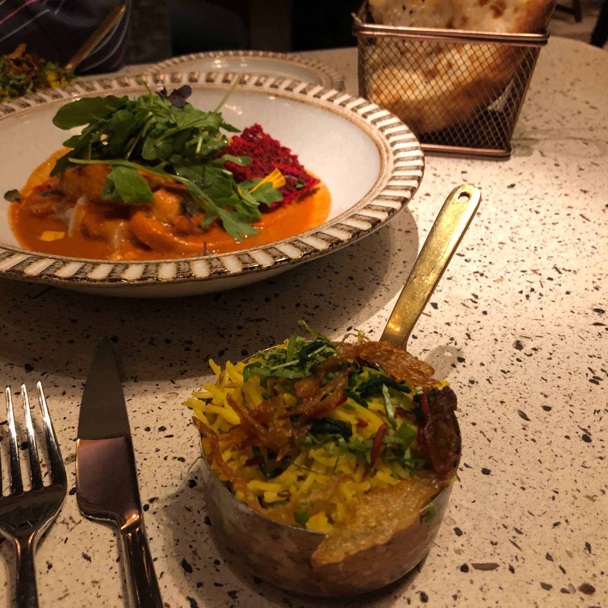 Además, pedimos el típico pan indio Naan que resultó el complemento perfecto para acompañar este plato y el siguiente.