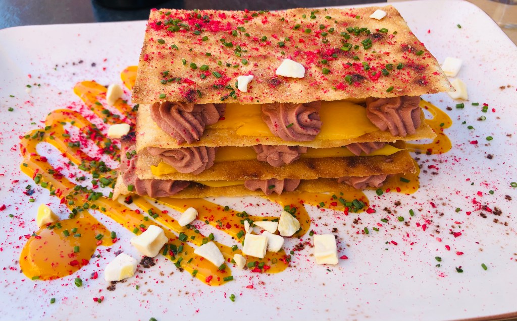 Sopa fría de vaina de guisante lágrima, “Cherry Mary” y Tosta de paté de pato casero. Exquisitez antesala de lo que vendría a continuación