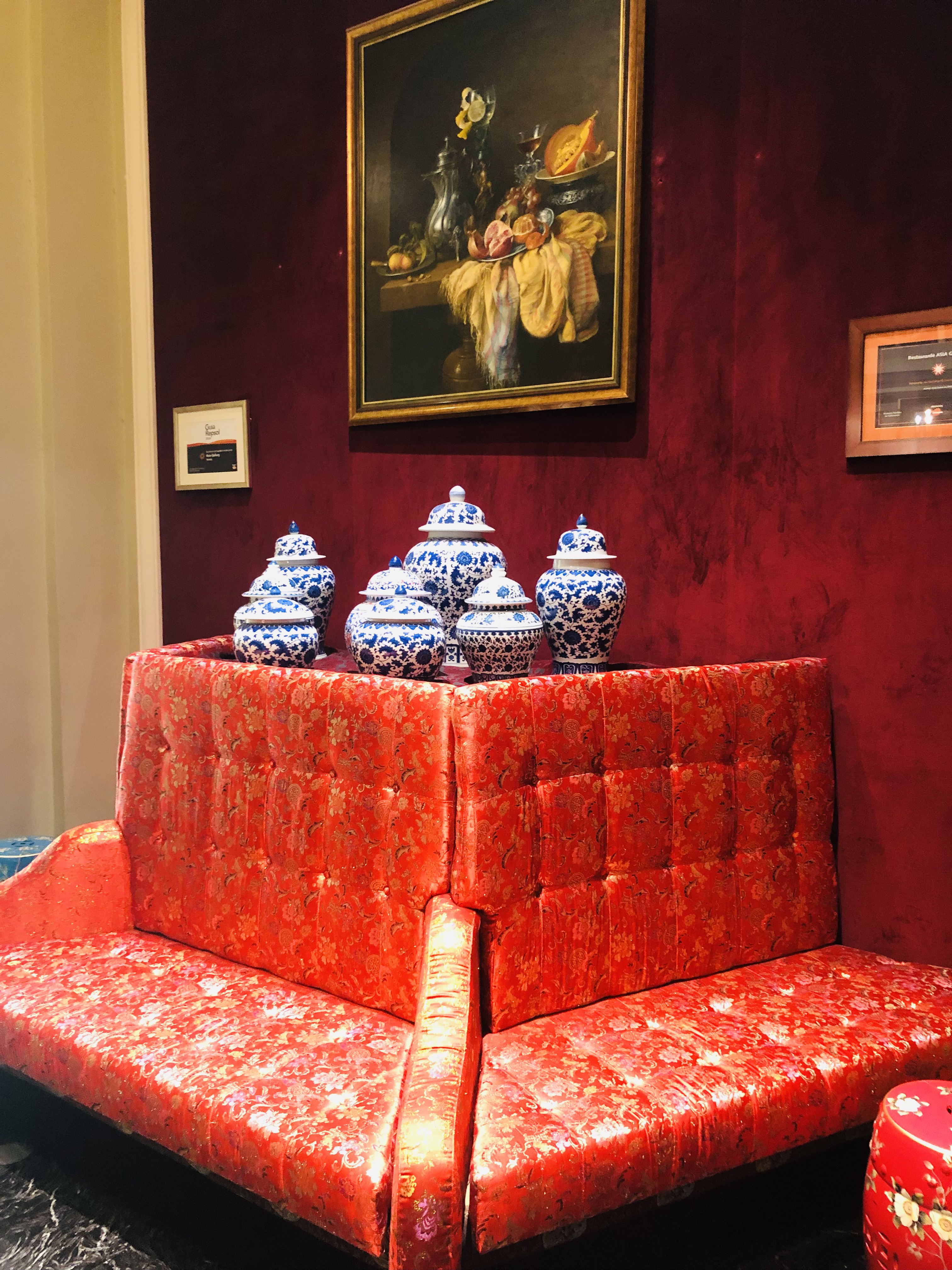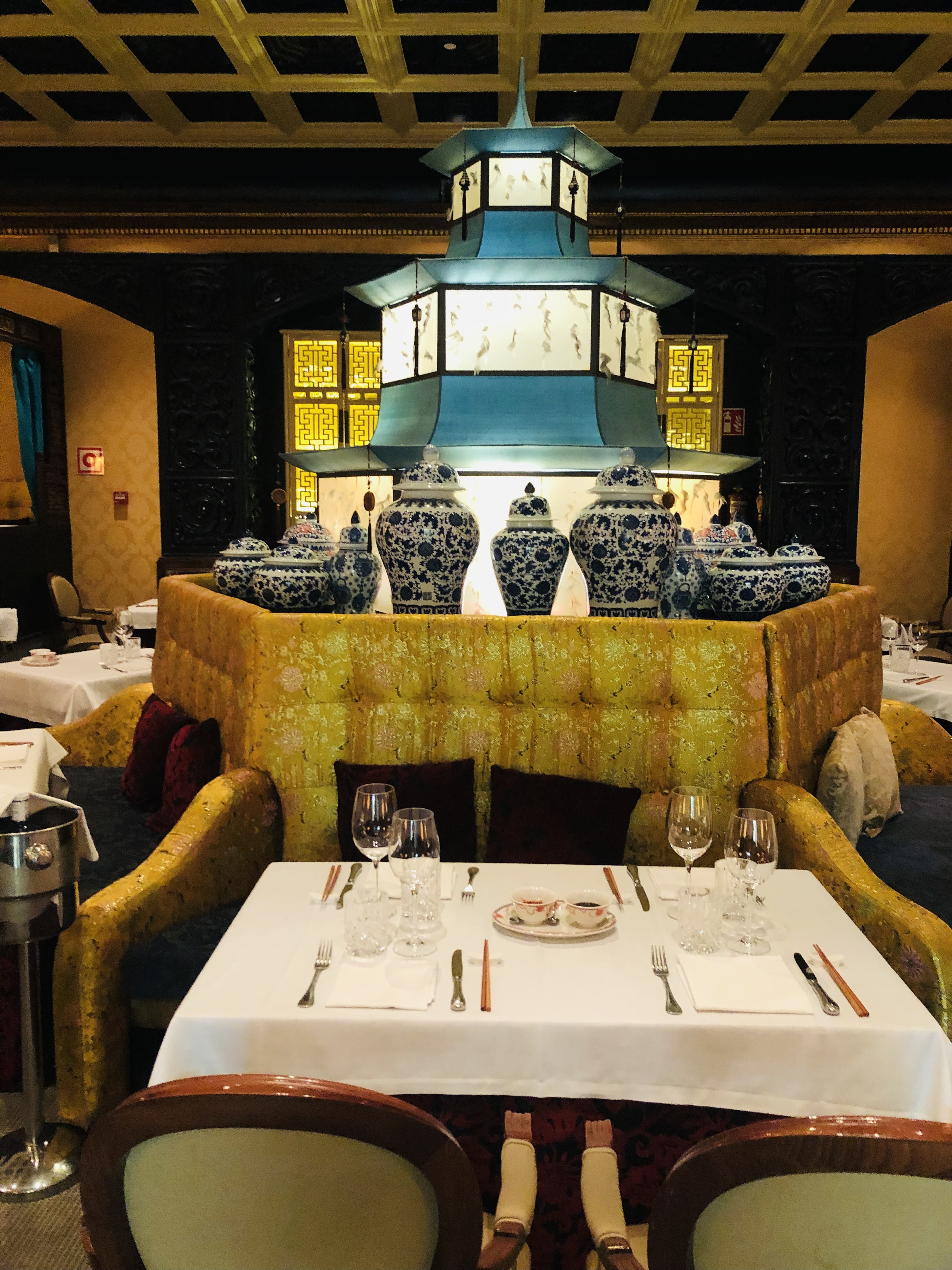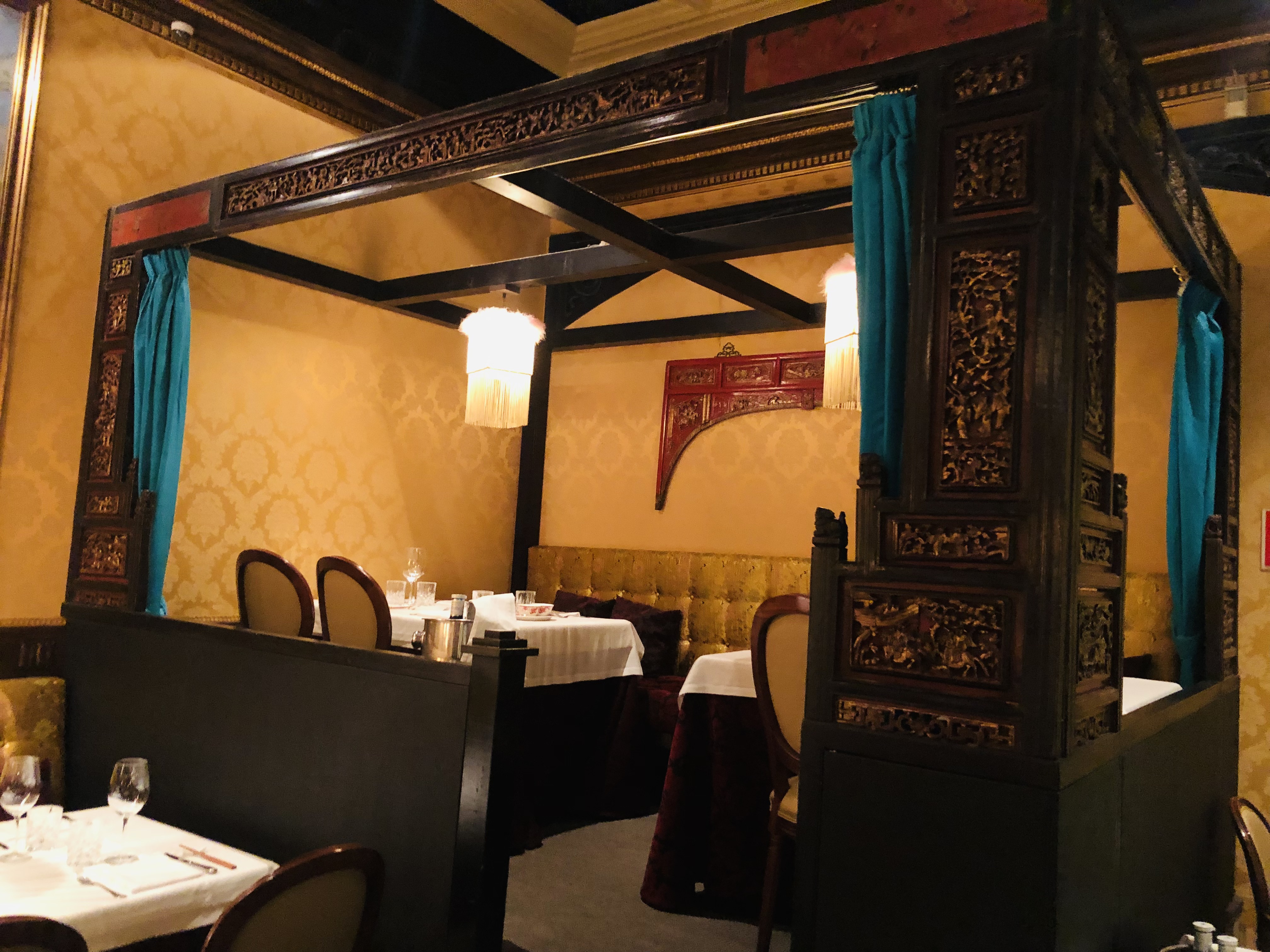 Entrar en el restaurante impresiona. Decorado al estilo oriental de los años 20, con sedas, pinturas y muebles de gran calidad, que recuerdan a la China Imperial, con múltiples detalles, como sus esplendidos cuadros originales, lámparas, jarrones, un sinfín de piezas que hacen del sitio un lugar único, de donde no puedes apartar la vista contemplando su glamour.
