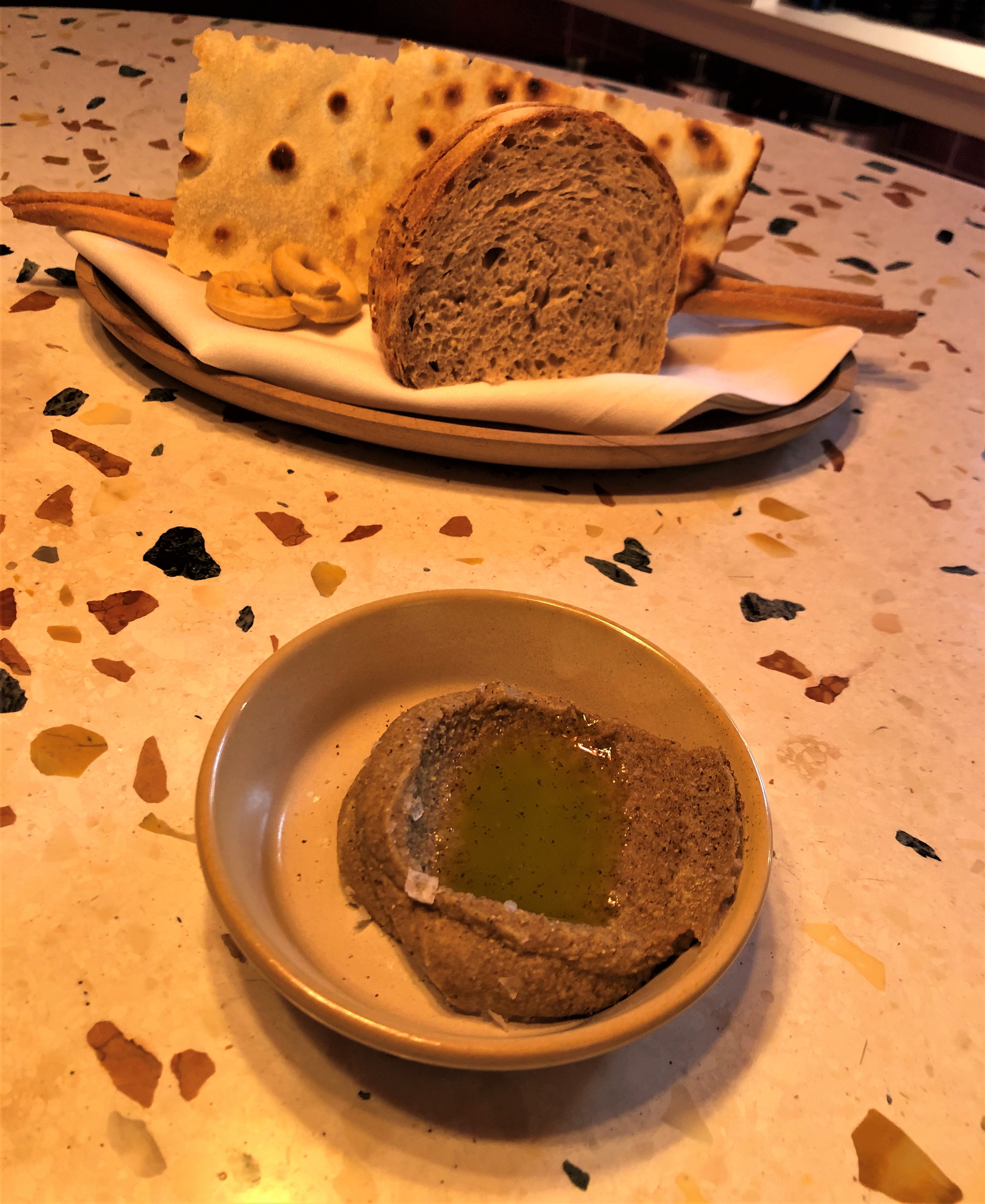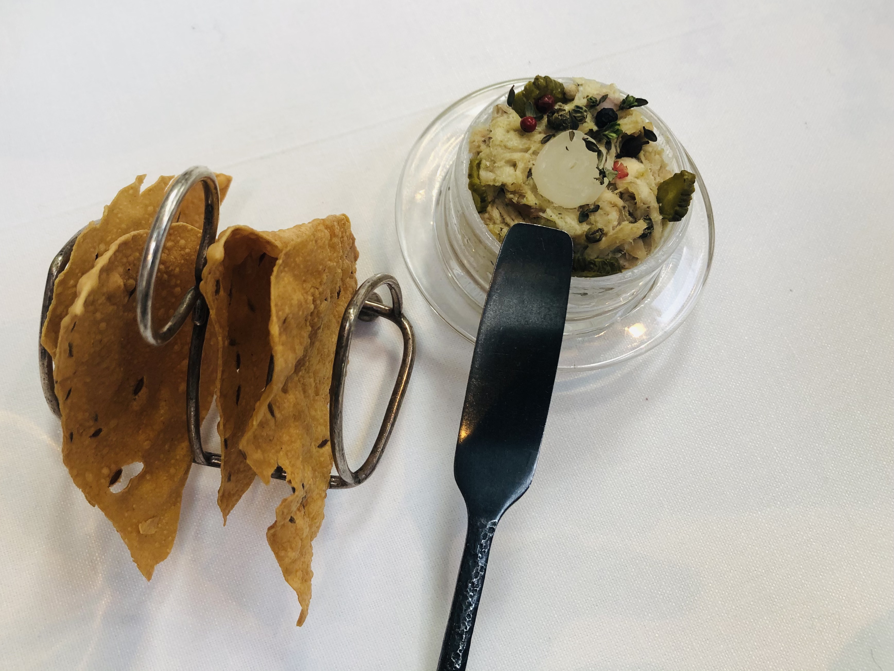 Antes de entrar en materia un fantástico aperitivo anticipa el festín una rillette de conejo con encurtidos y pan de lentejas.