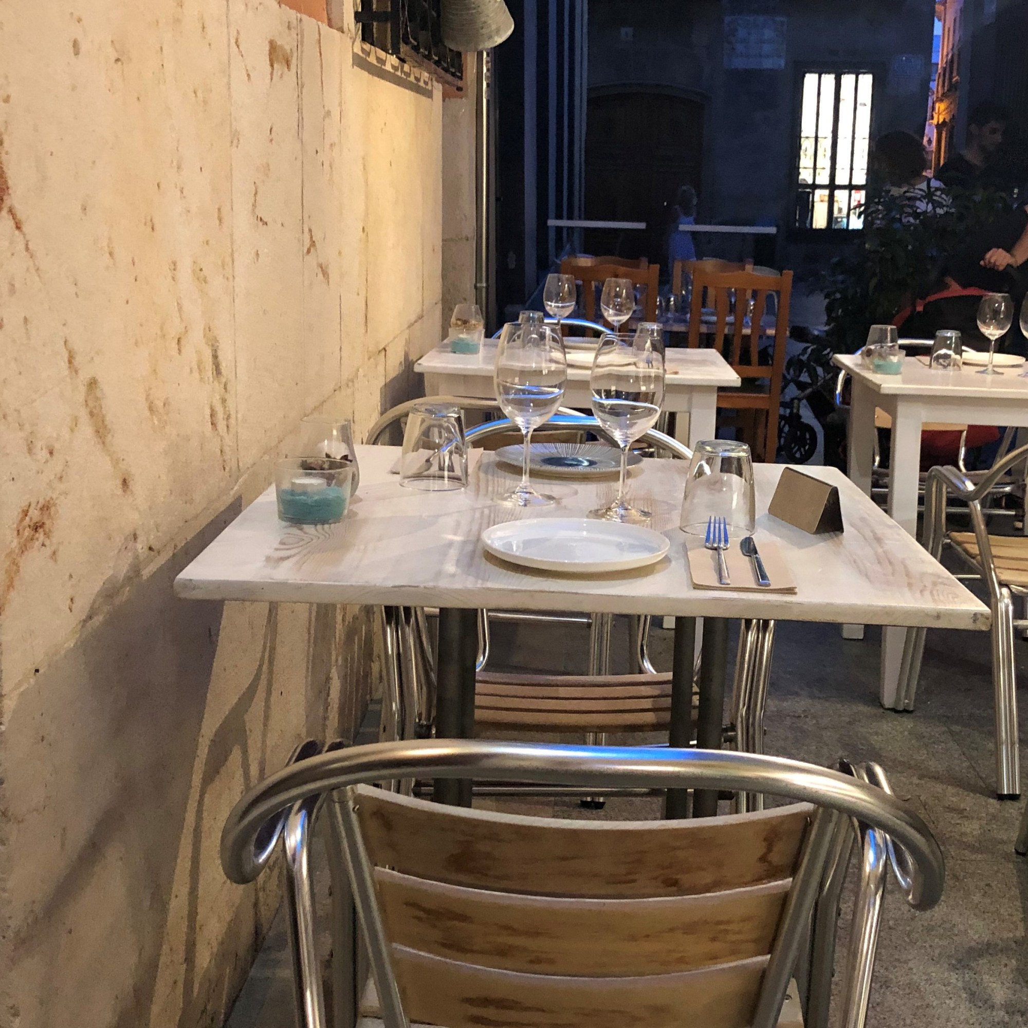 Pues esto es lo que me ha pasado en Benares. Sin duda su oferta gastronómica es extraordinaria, pero su política de reserva de mesas no tanto. Cuando llegamos con una mesa reservada para dos, nos colocan en la entrada, en una mesa en medio de otras dos que estaban vacías.
