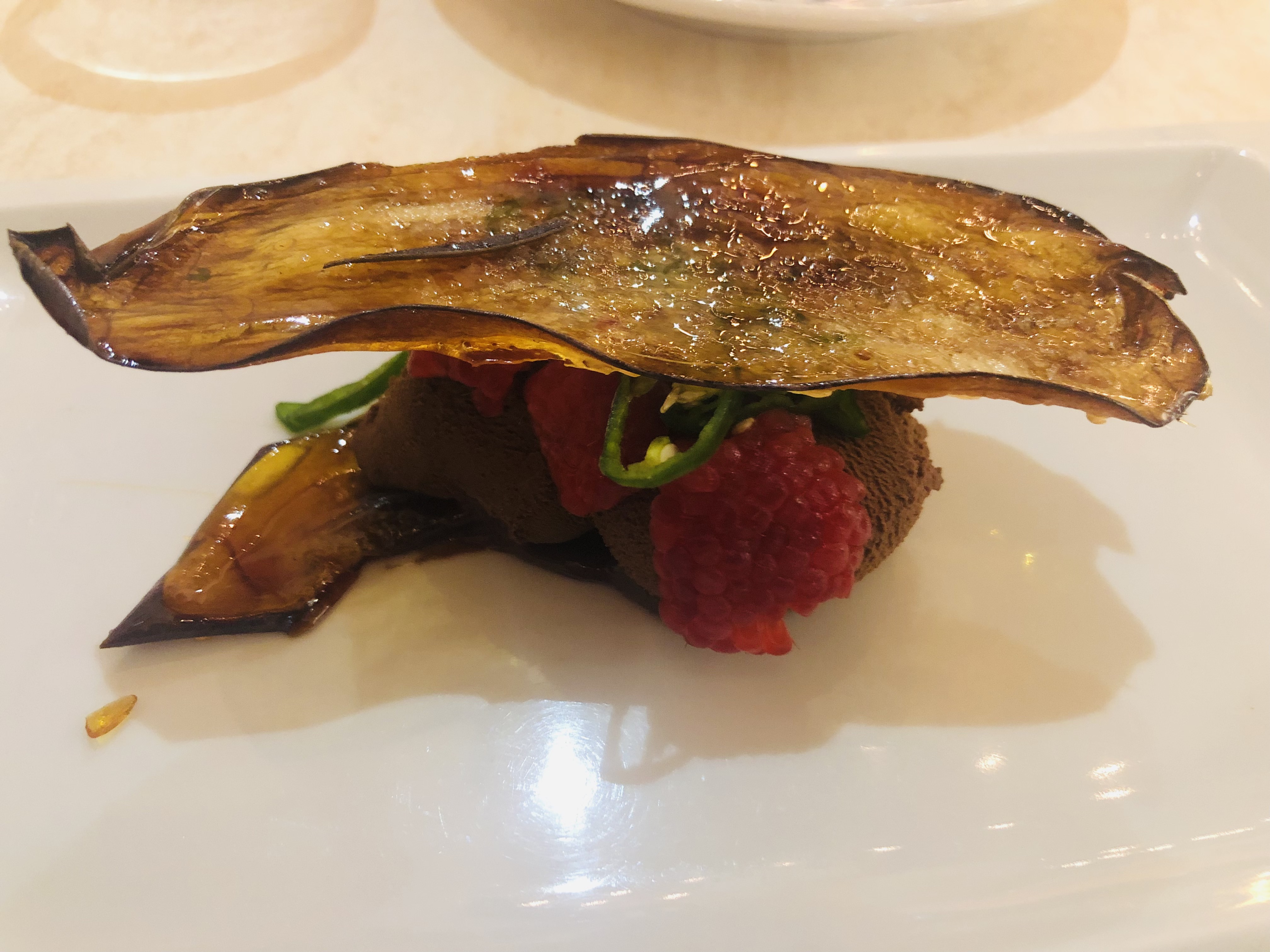 Abriendo boca con un aperitivo Amouse Bouche, un pastelito de harina de garbanzo y salsa de pimiento de piquillo