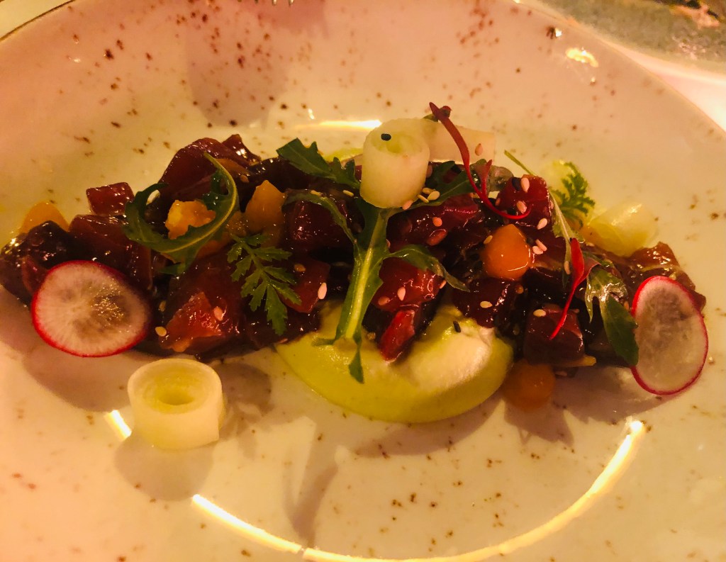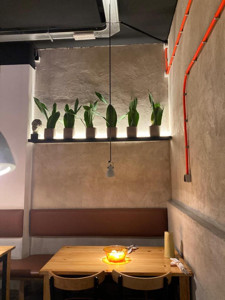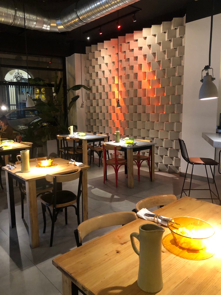 Es lo primero que llama la atención cuando entras en el local, estética industrial, brutas las paredes, con una gran barra en un lateral y mesas de madera o con la tapa de zinc, todo sencillez y amplitud, preludio de lo que te espera en la degustación de su cocina, de ahí la elección del nombre.