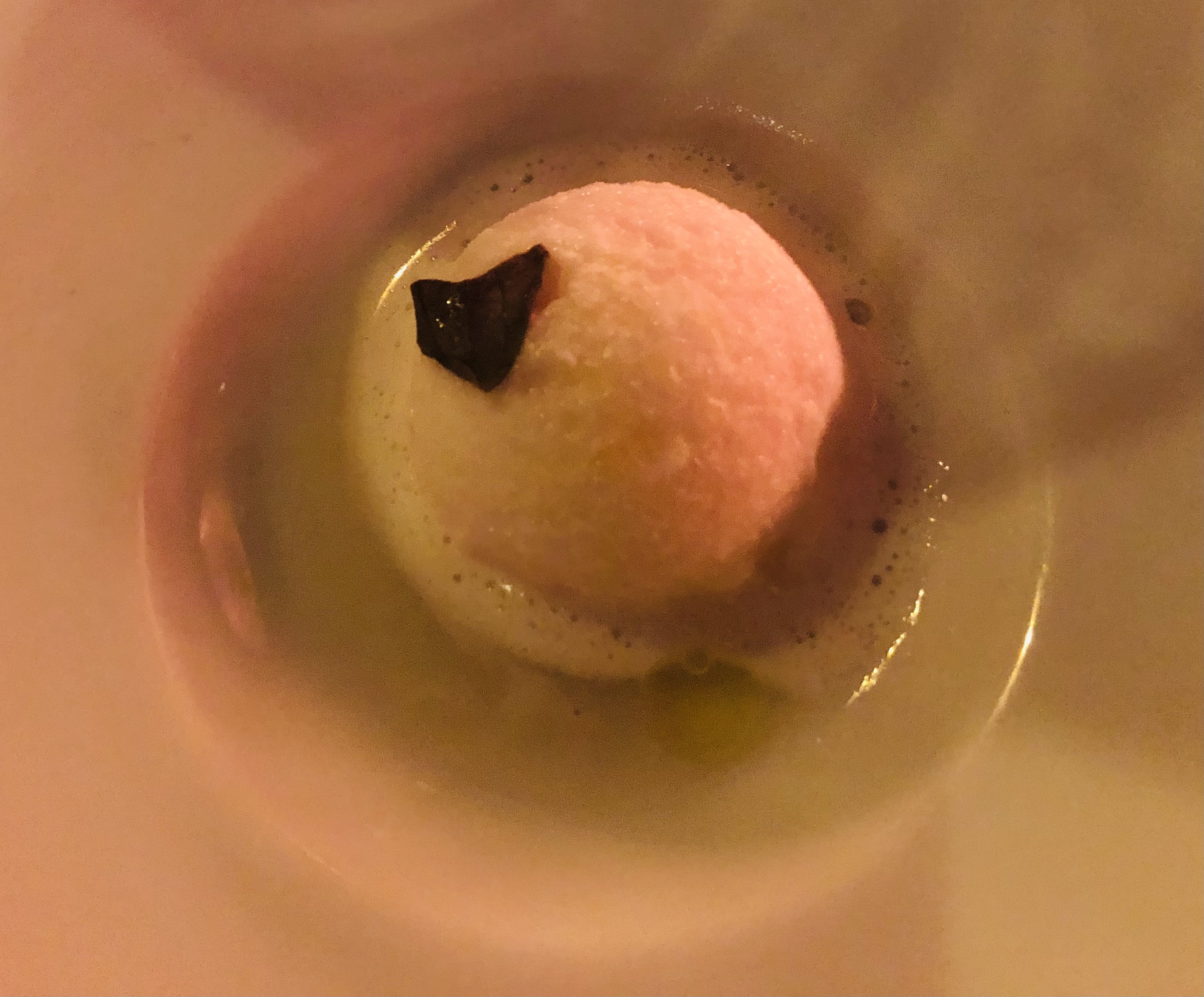 Empezamos los entrantes con una refrescante Ostra aliñada con escabeche de puerro, bocado indescriptible